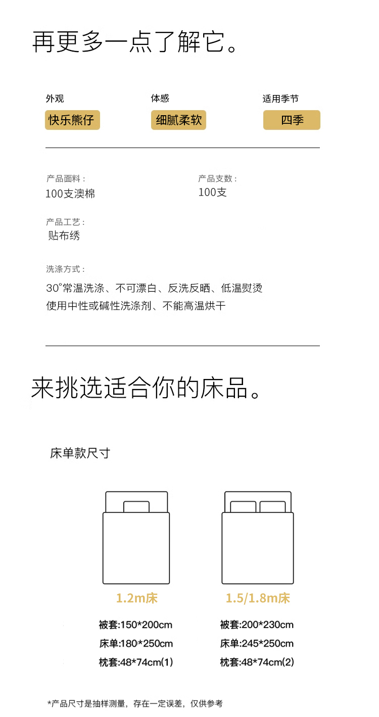 商品名称:西西家居 2023新款100支澳棉四件套快乐熊仔
