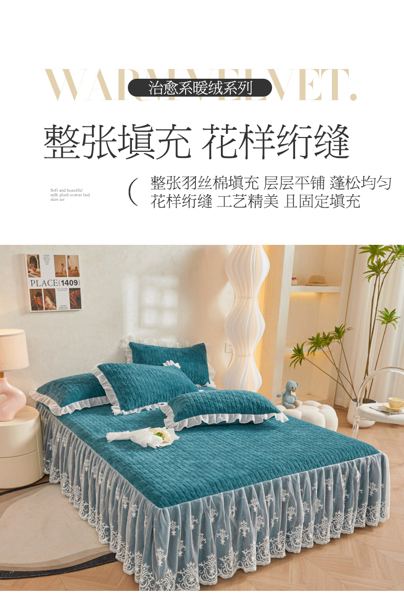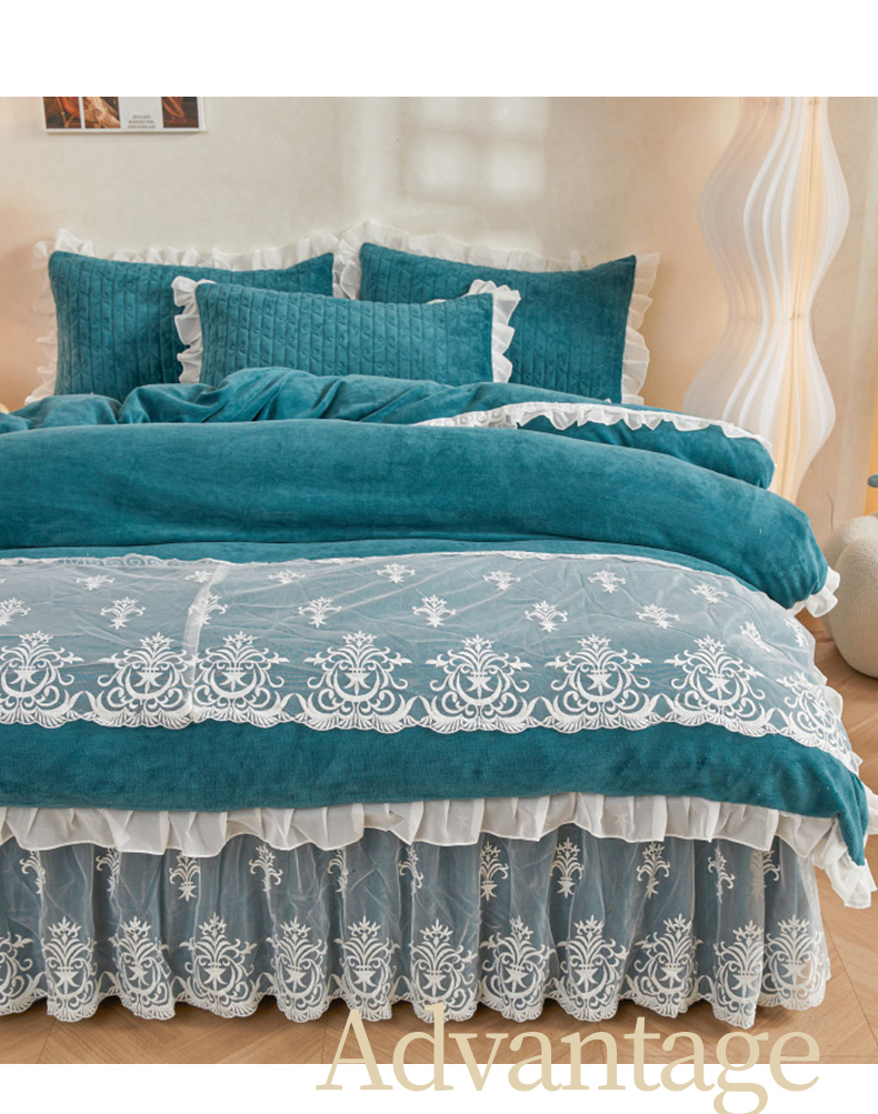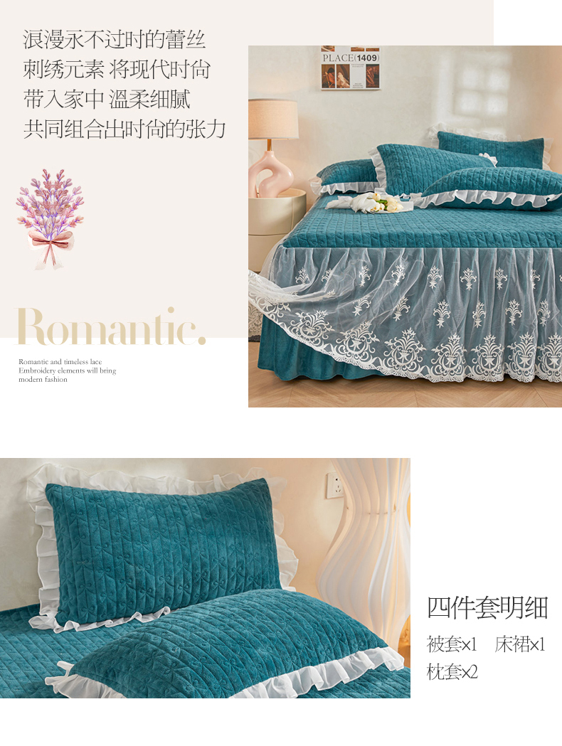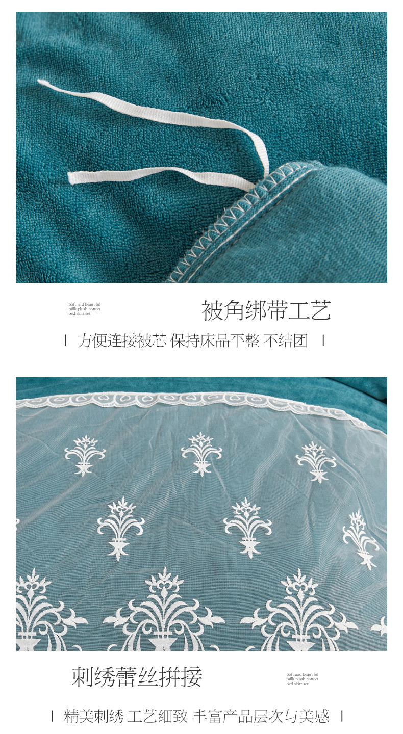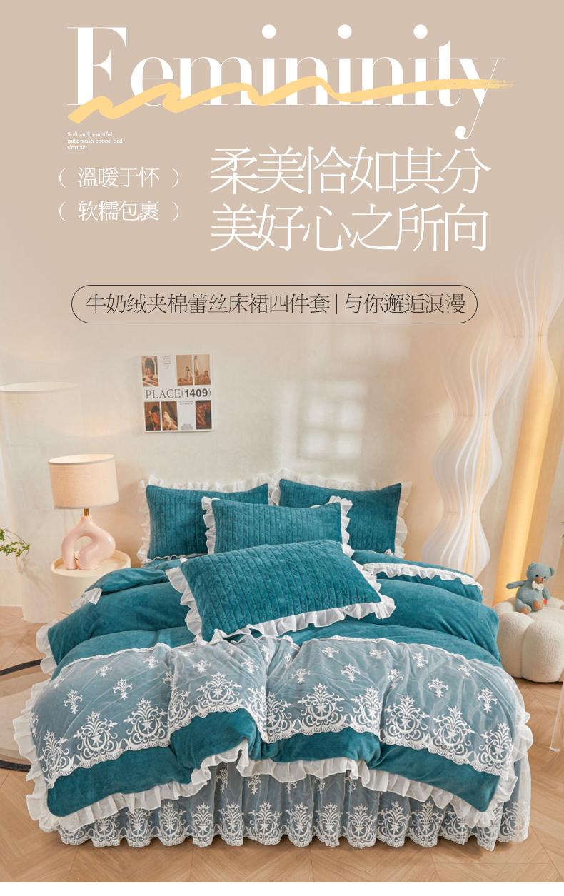 当前位置: 91家纺网 > 商品网购 > 床品套件 > 四件套 > 牛奶绒四件套 > 虹星家纺 2023新款牛奶绒夹棉床裙套件清新系列-床裙款四件套 清新-孔雀兰