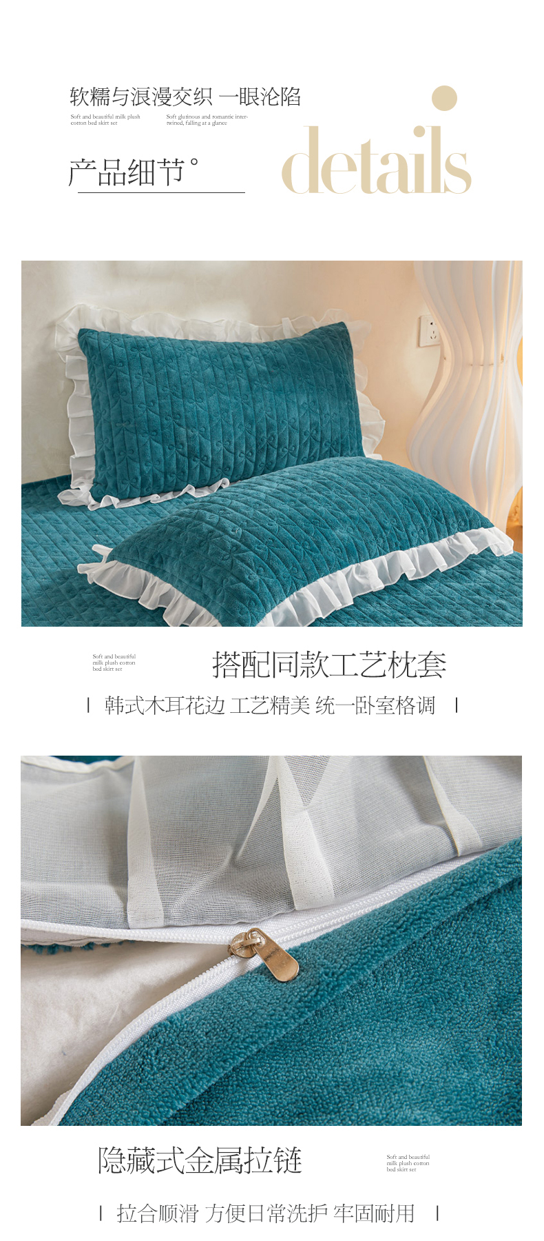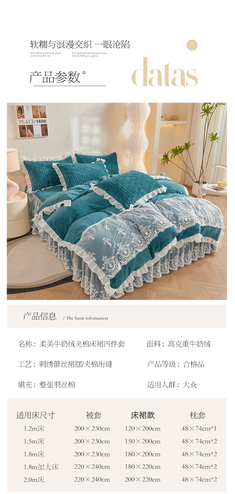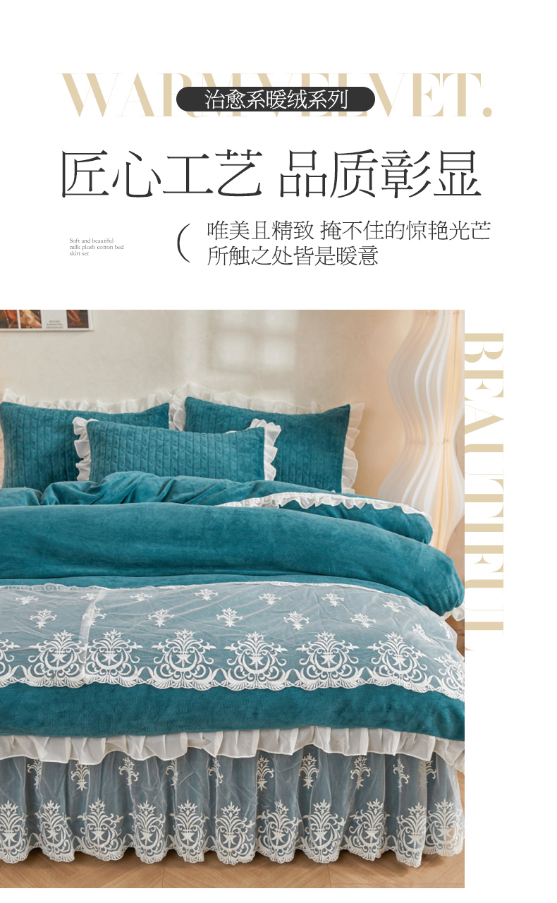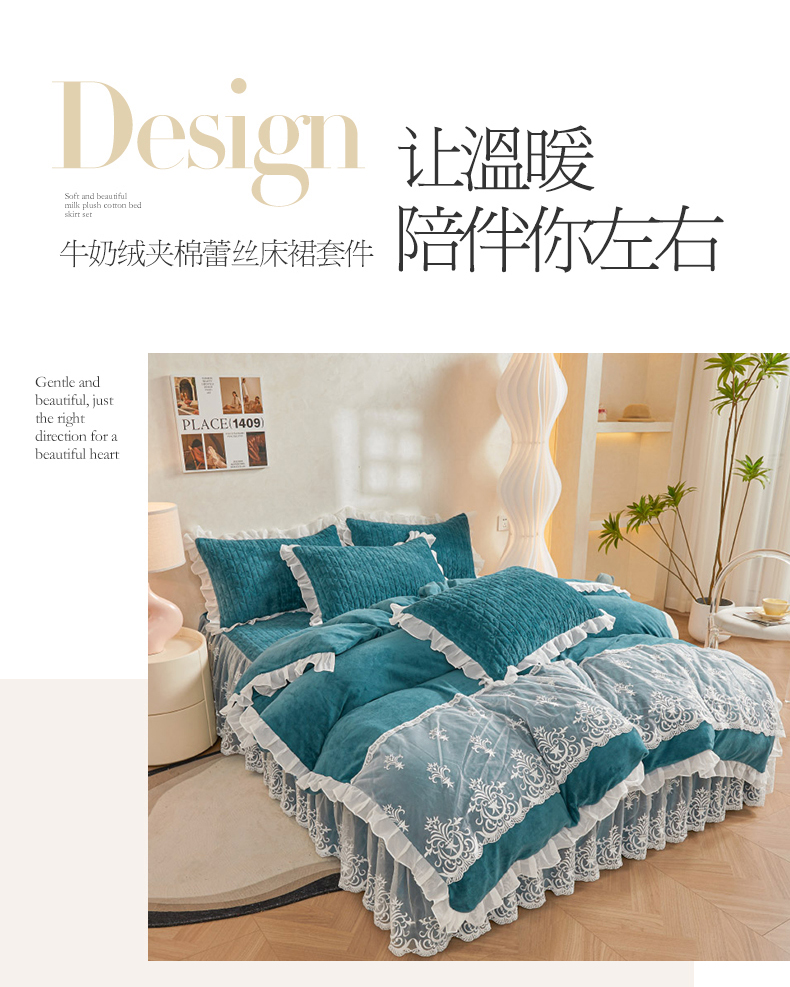 当前位置: 91家纺网 > 商品网购 > 床品套件 > 四件套 > 牛奶绒四件套 > 虹星家纺 2023新款牛奶绒夹棉床裙套件清新系列-床裙款四件套 清新-孔雀兰