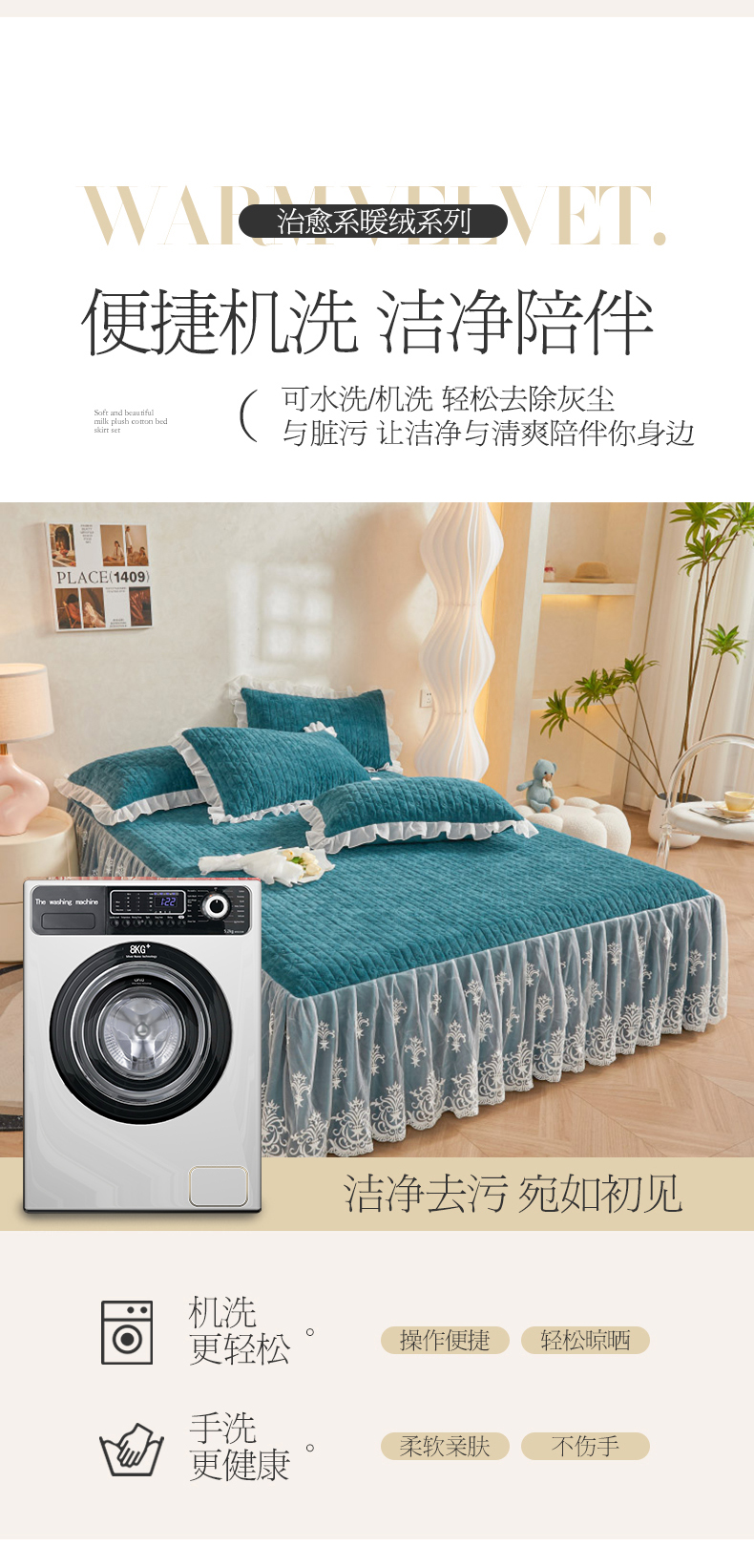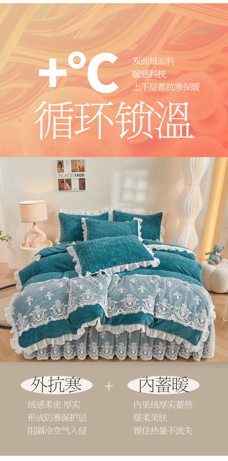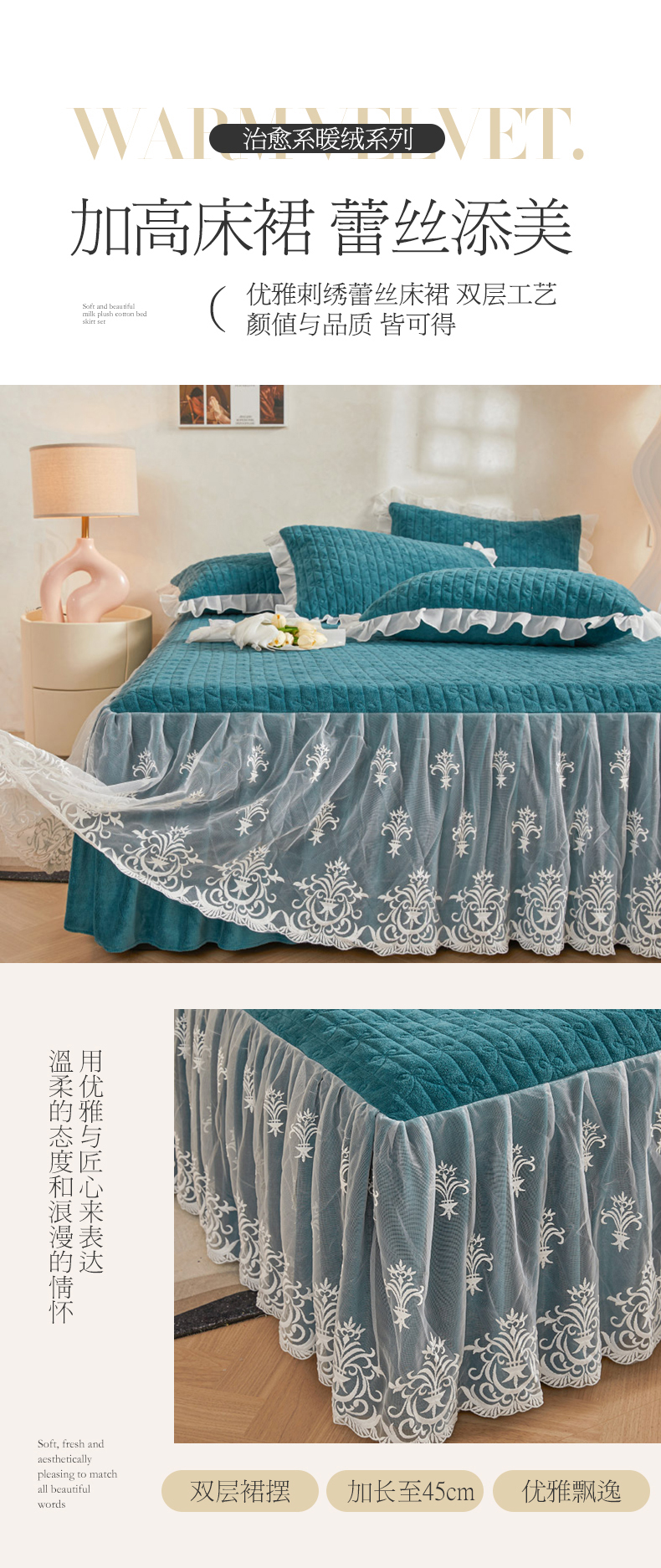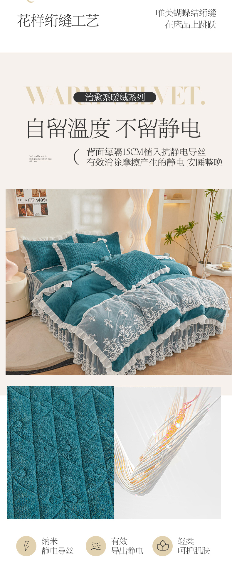 当前位置: 91家纺网 > 商品网购 > 床品套件 > 四件套 > 牛奶绒四件套 > 虹星家纺 2023新款牛奶绒夹棉床裙套件清新系列-床裙款四件套 清新-孔雀兰