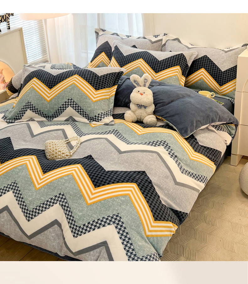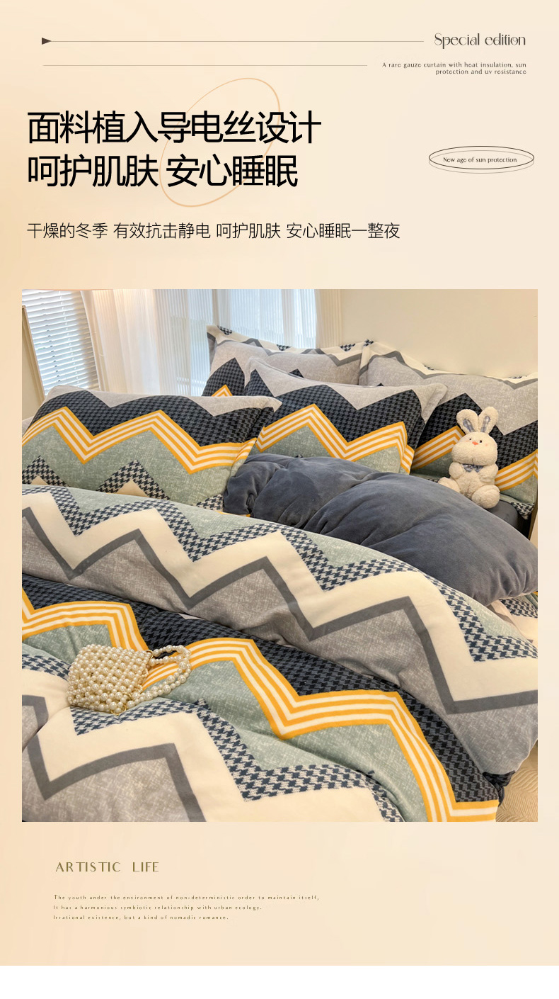 商品名称:寐居家纺 2023新款小清新牛奶绒印花被套 简约格