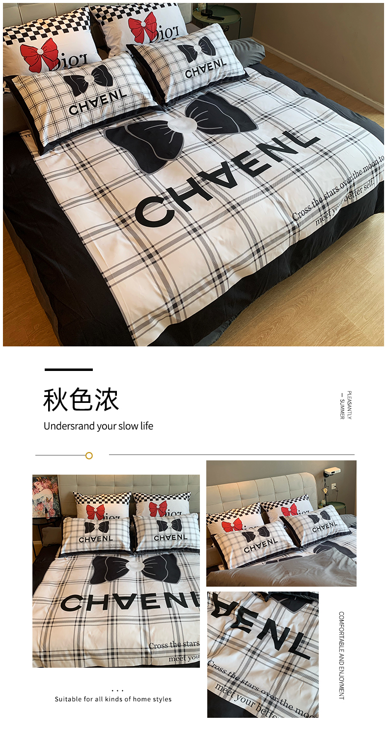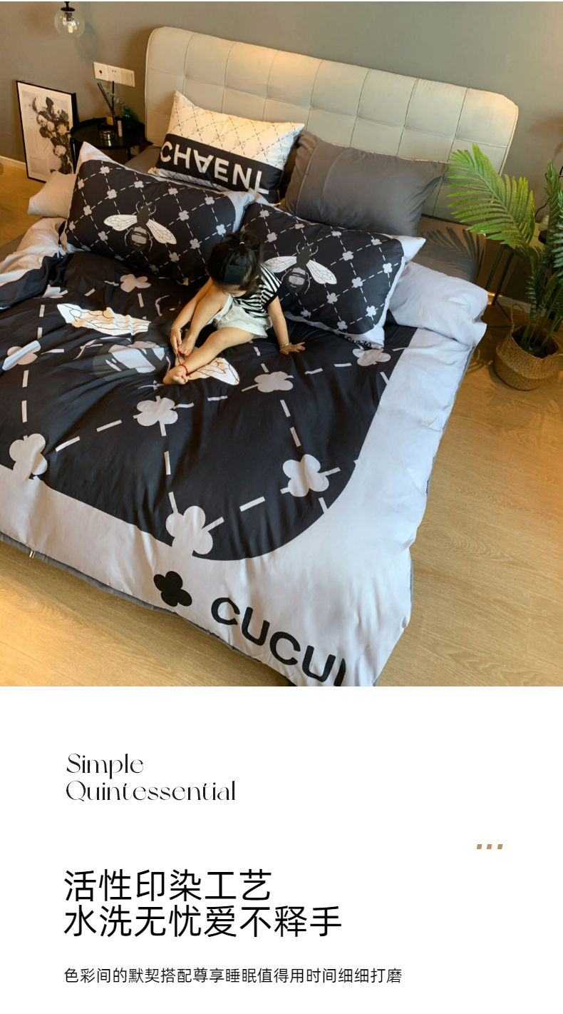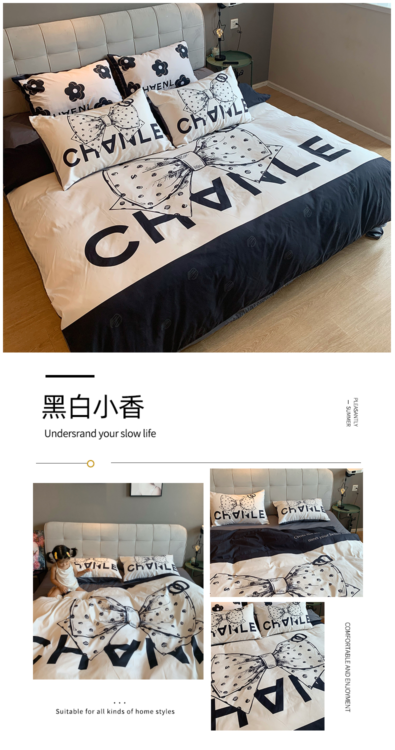 (总)色鬼布艺高端家居主号 2025新款轻奢亲肤纯棉数码印花网红热款四件套,豹纹香,白金V,白香花,大H,黑白迪,黑白V,灰迪,咖古,克莱因,慕斯小姐,山茶花,星空