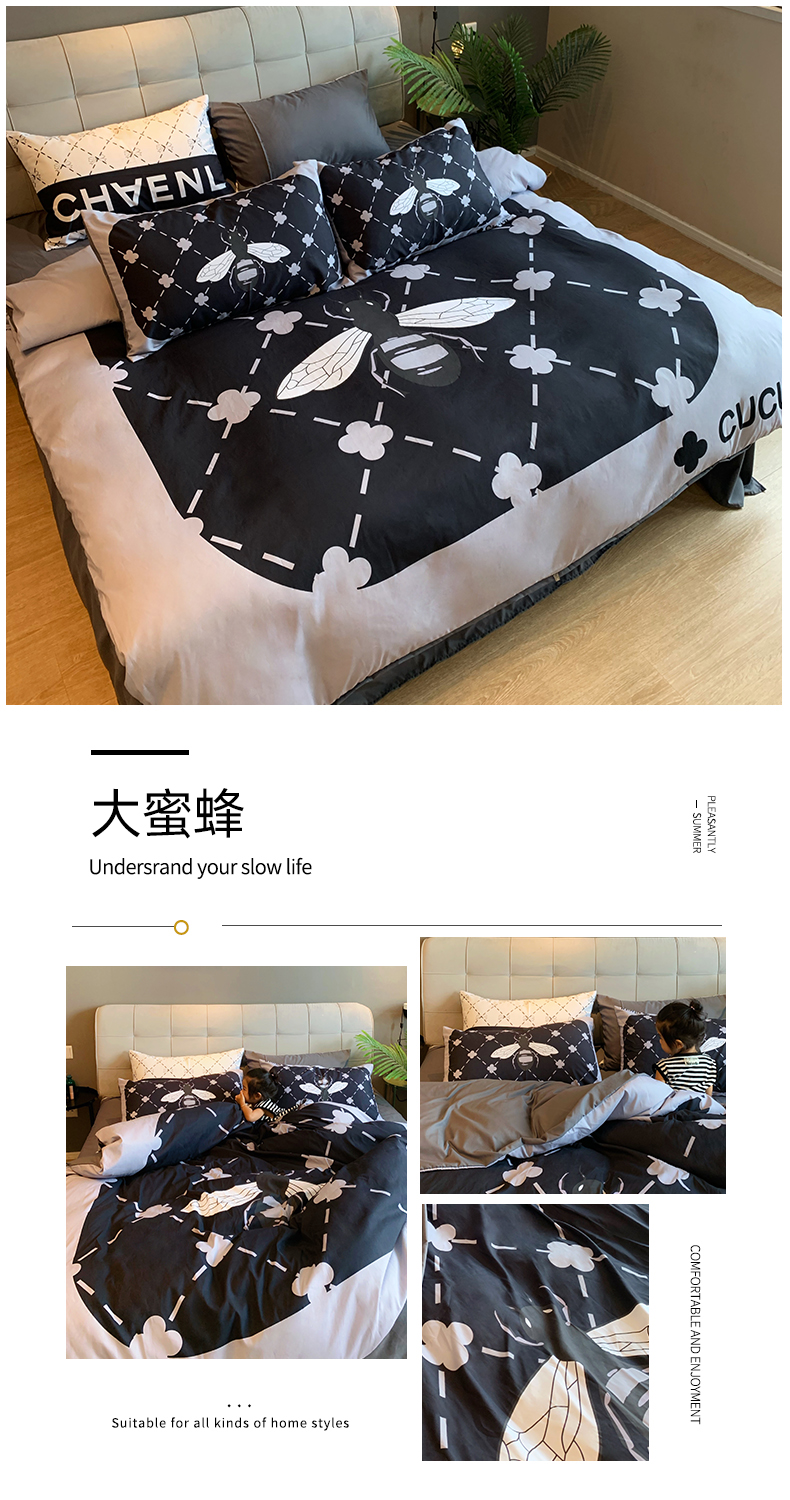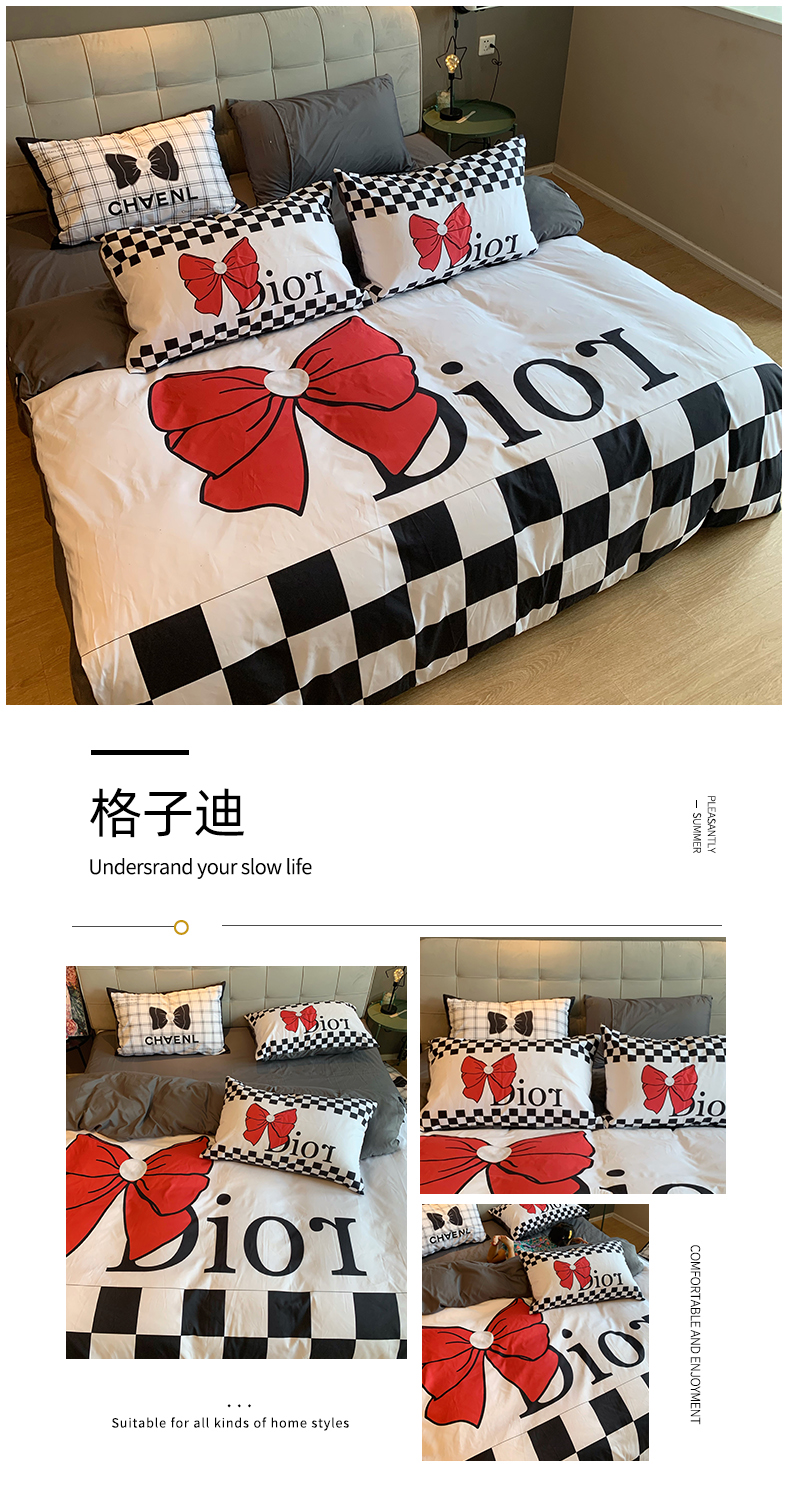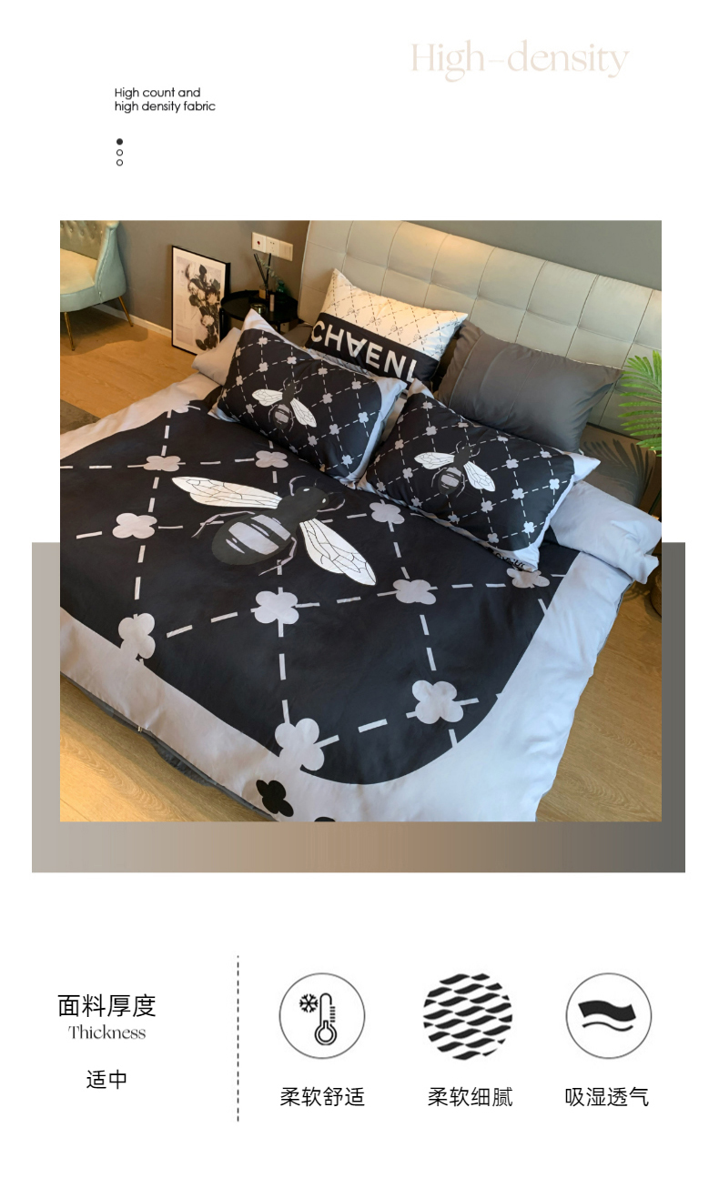 (总)色鬼布艺高端家居主号 2025新款轻奢亲肤纯棉数码印花网红热款四件套,豹纹香,白金V,白香花,大H,黑白迪,黑白V,灰迪,咖古,克莱因,慕斯小姐,山茶花,星空