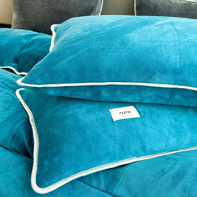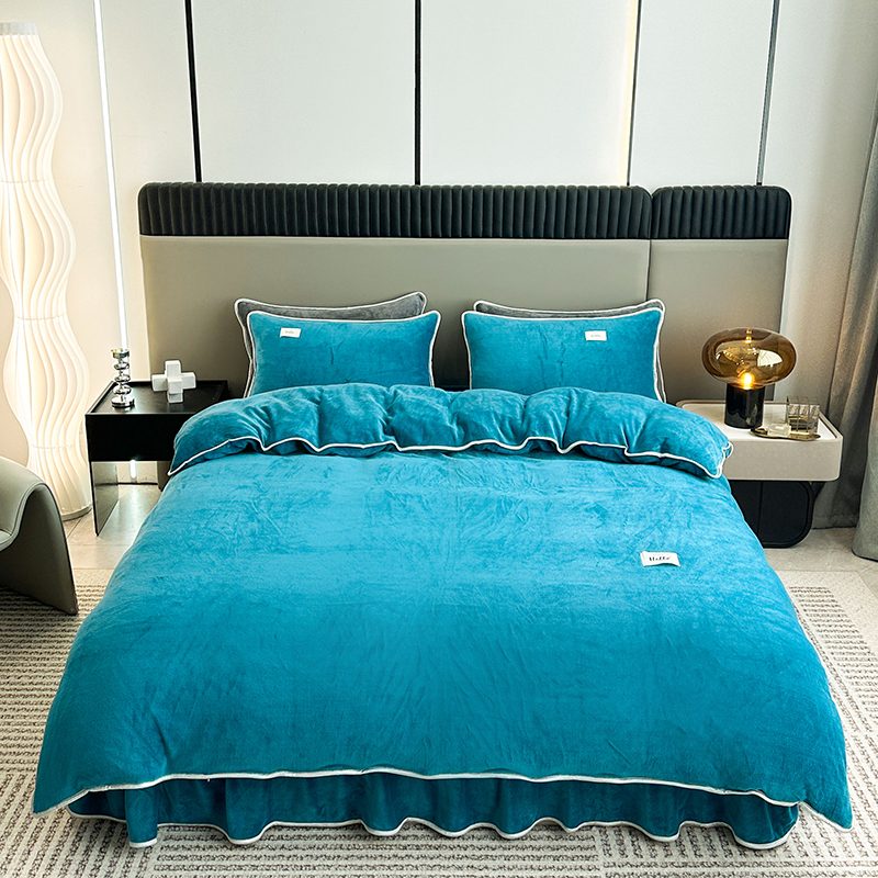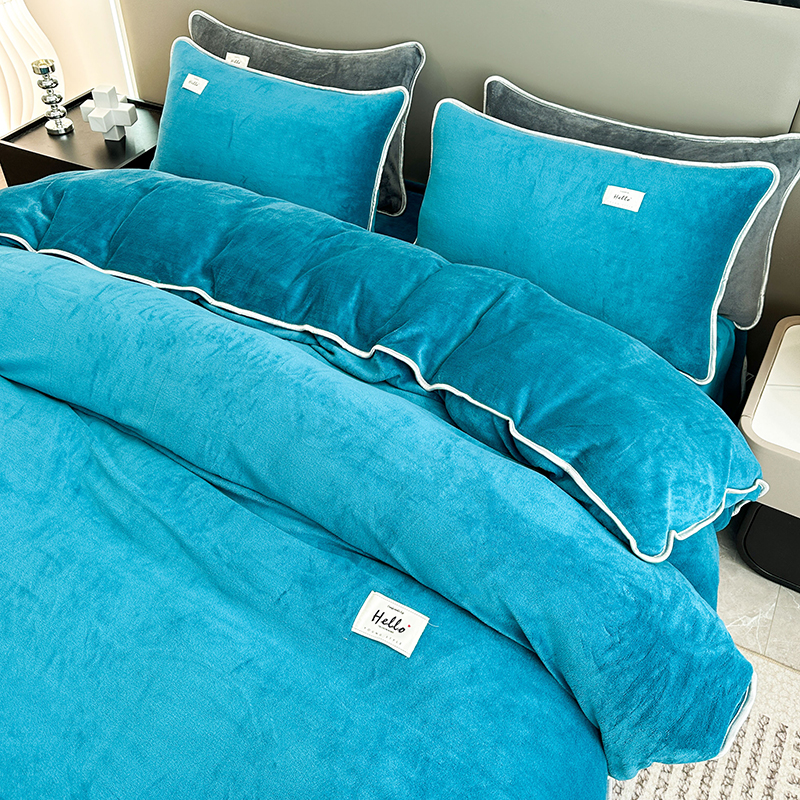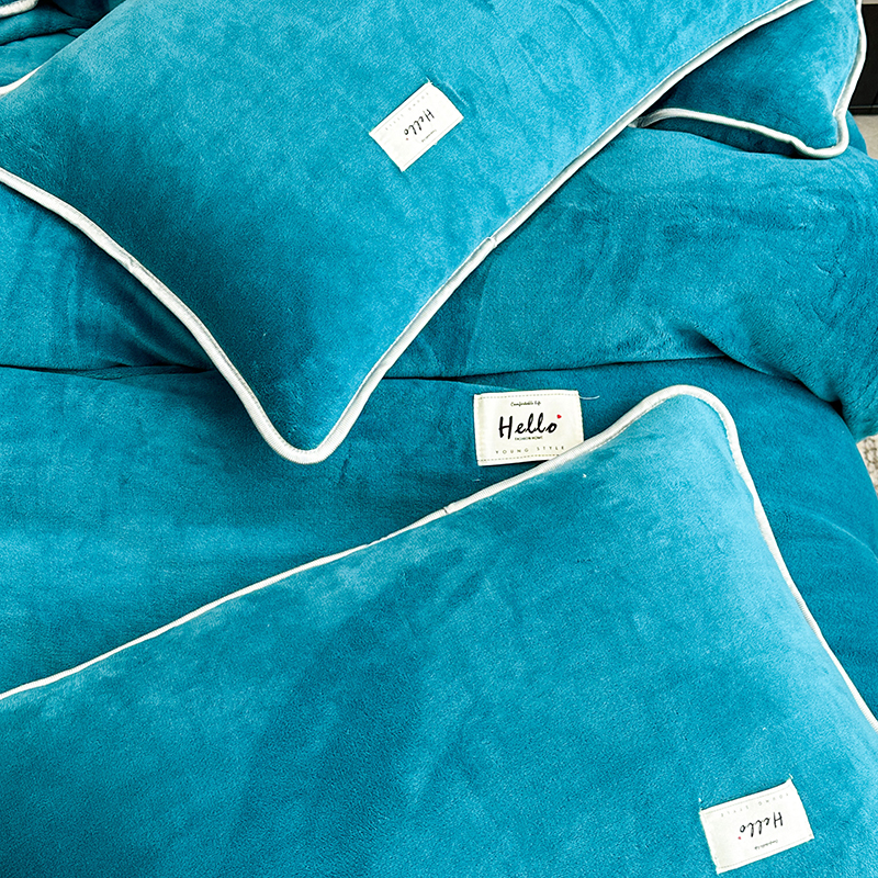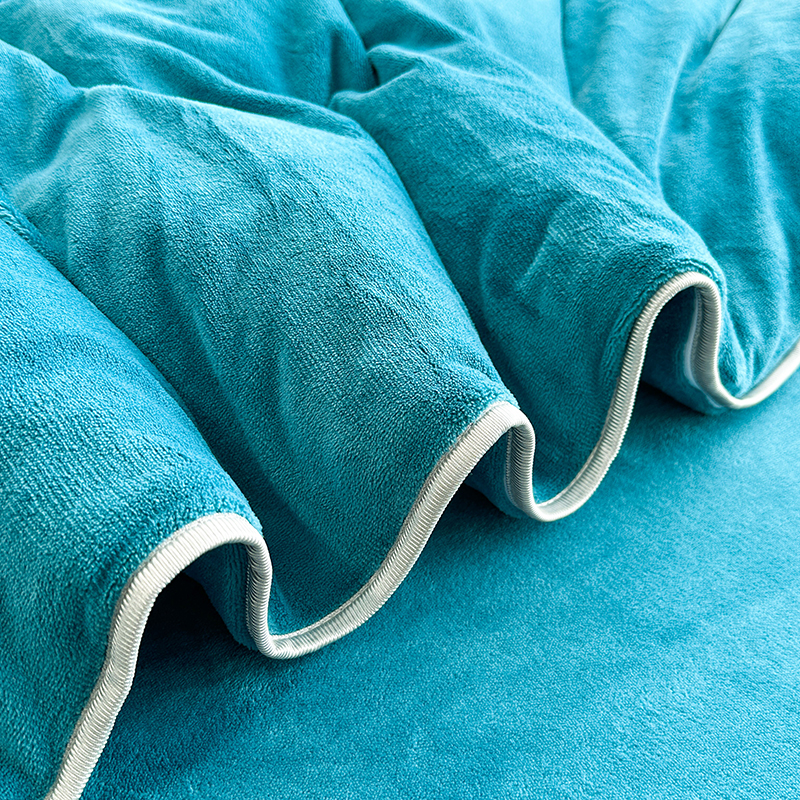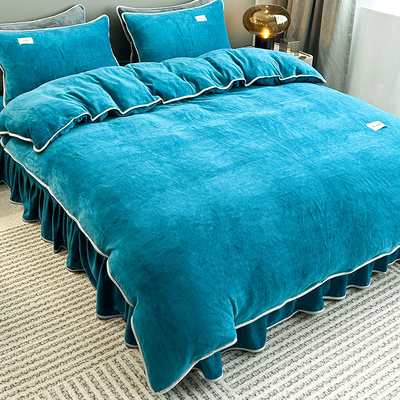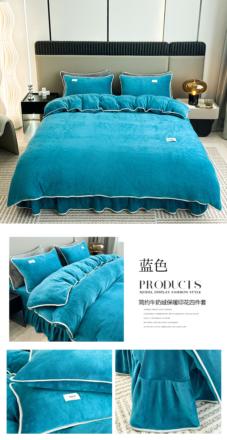 商品名称:欧喜璐 2023新款高克重牛奶绒四件套法莱绒金貂绒8.5斤加厚保暖-纯色款 蓝色
