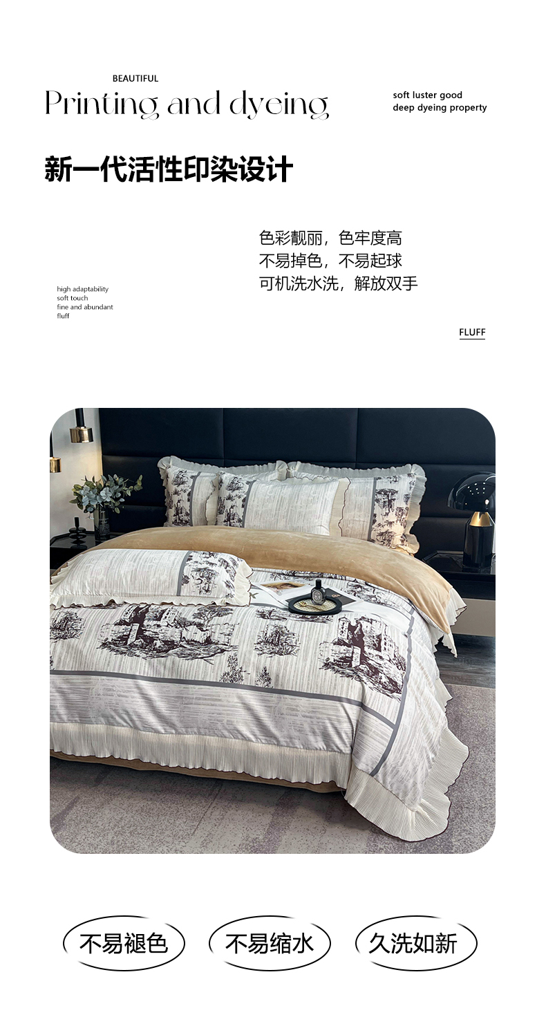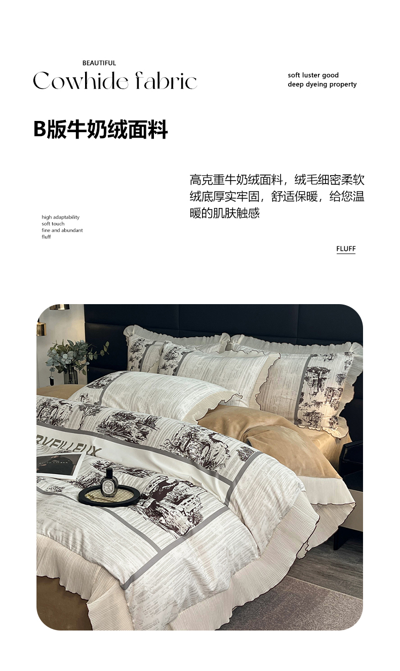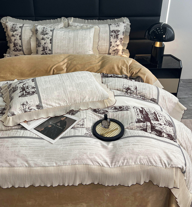 商品名称:麋兔 2023新款A版a类双层纱b版牛奶绒四件套 爱丁堡