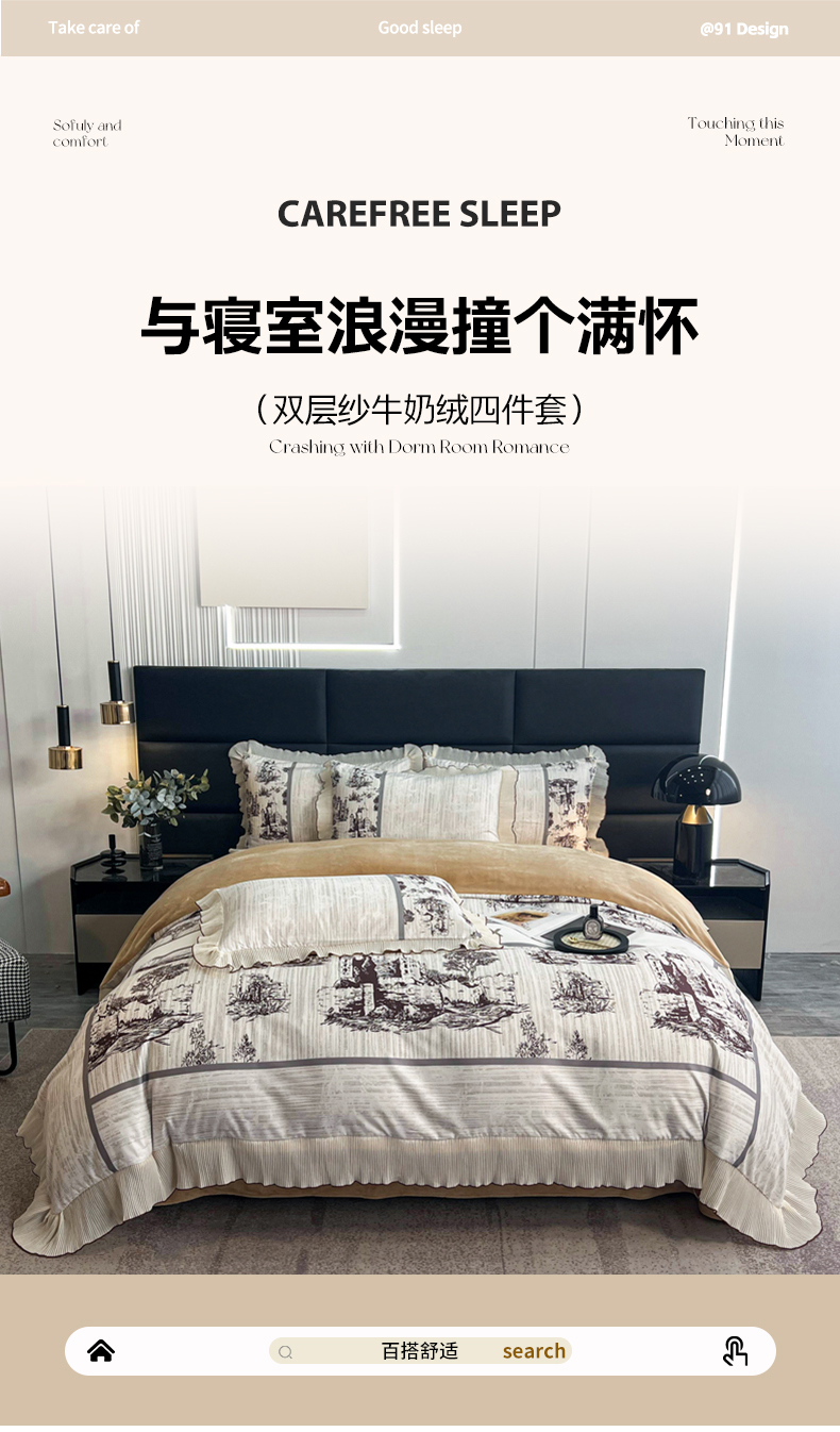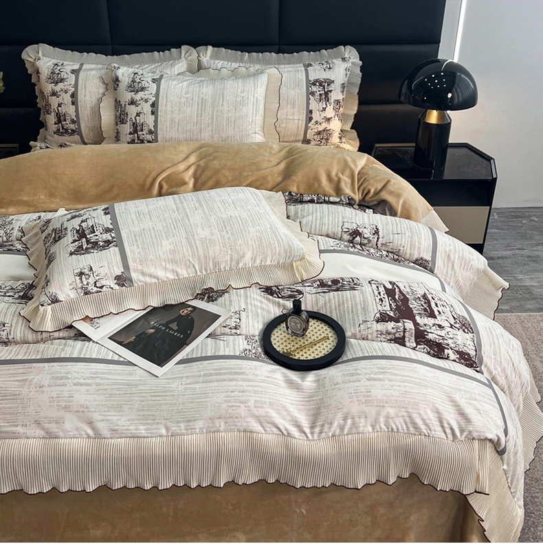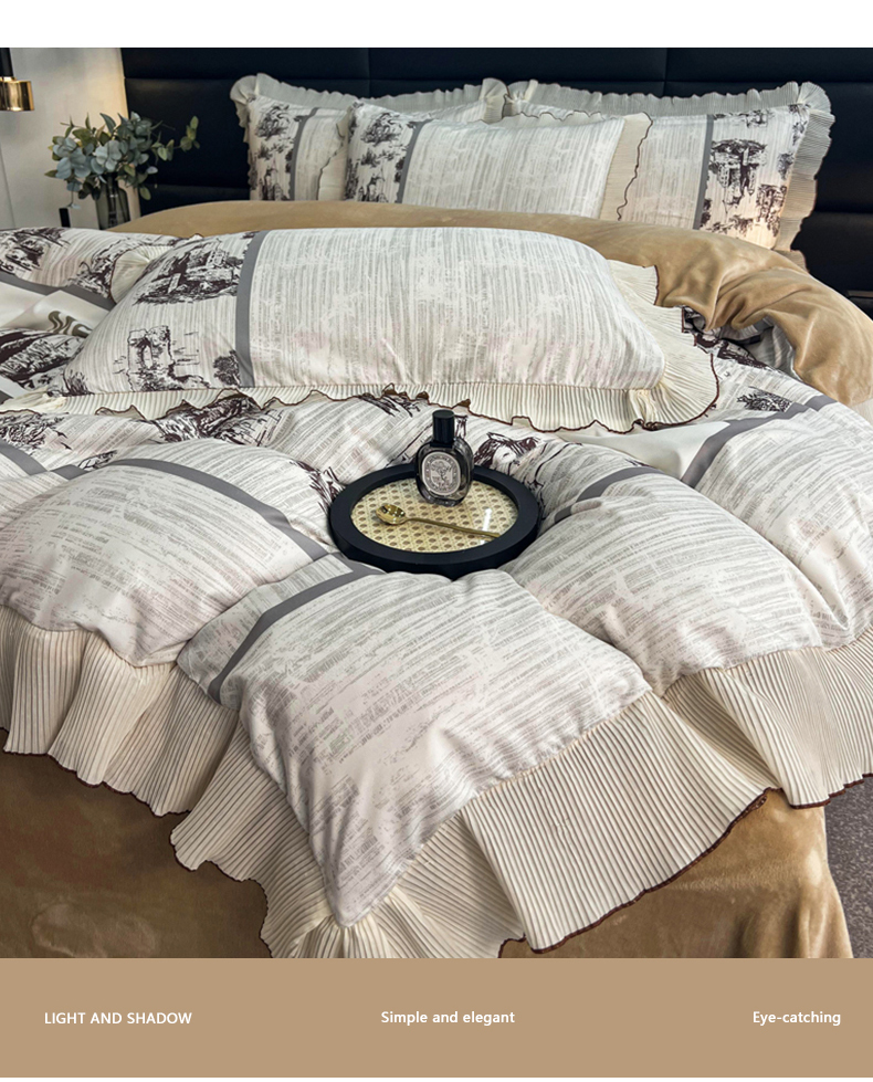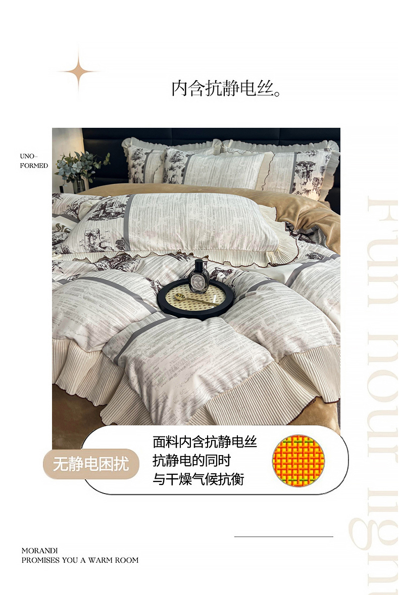 商品名称:麋兔 2023新款A版a类双层纱b版牛奶绒四件套 爱丁堡
