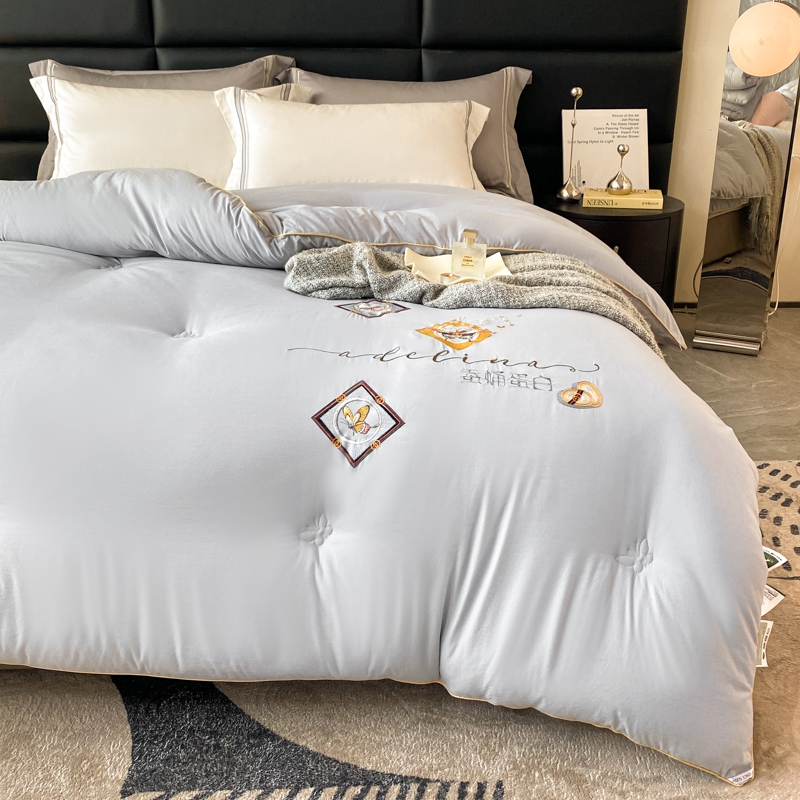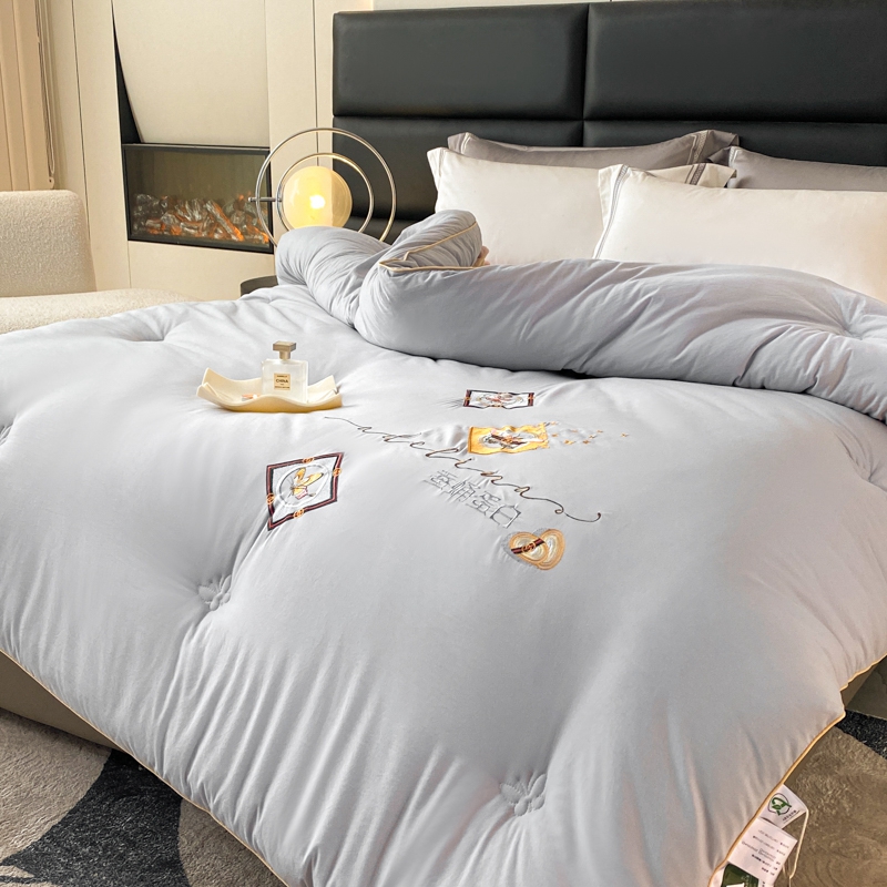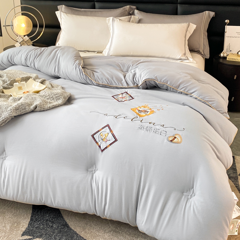 伊人居2023新款蚕蛹蛋白刺绣大豆被春秋被冬被【直播电商爆款】【来量定做】 灰色