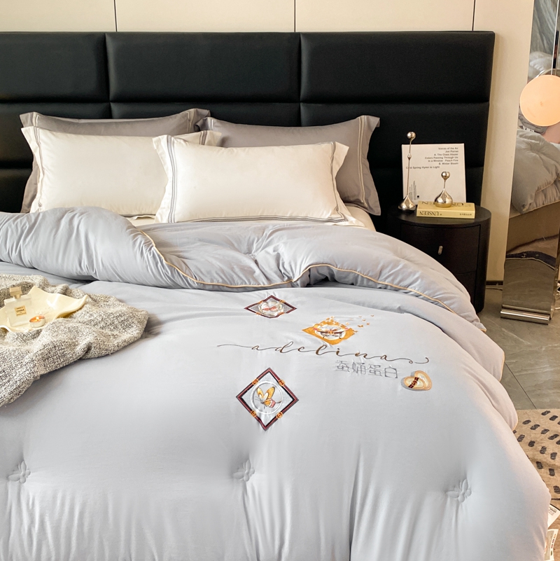 商品名称:伊人居2023新款蚕蛹蛋白刺绣大豆被春秋被冬被【直播电商爆款】【来量定做】 灰色
