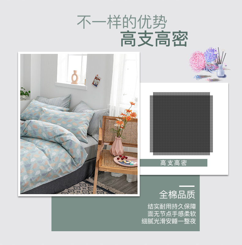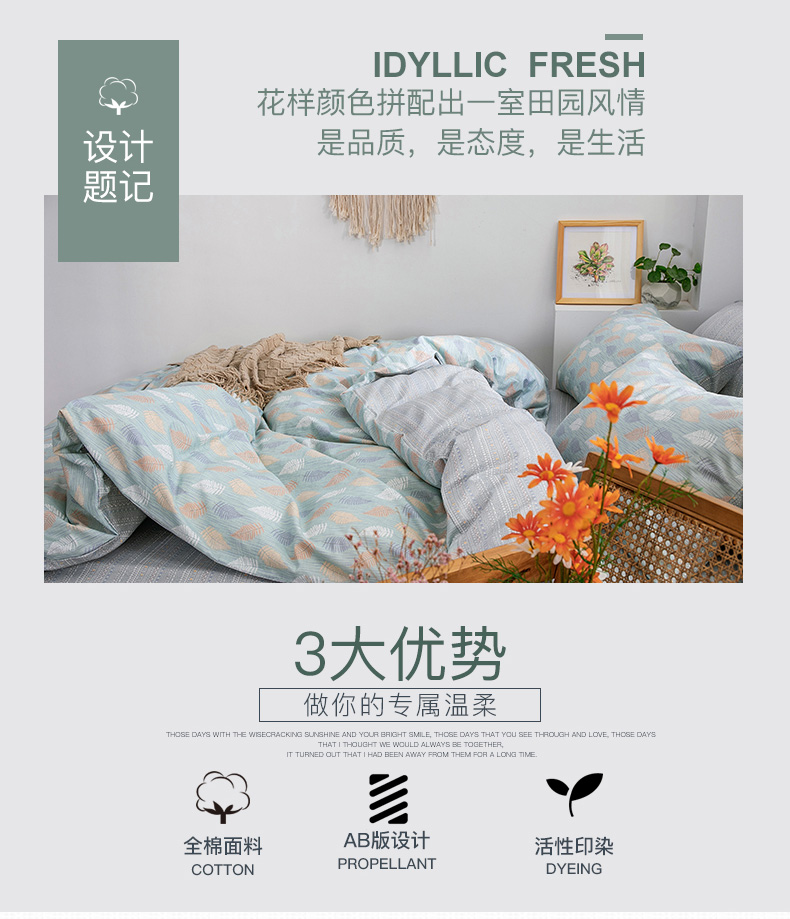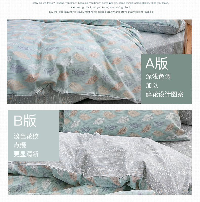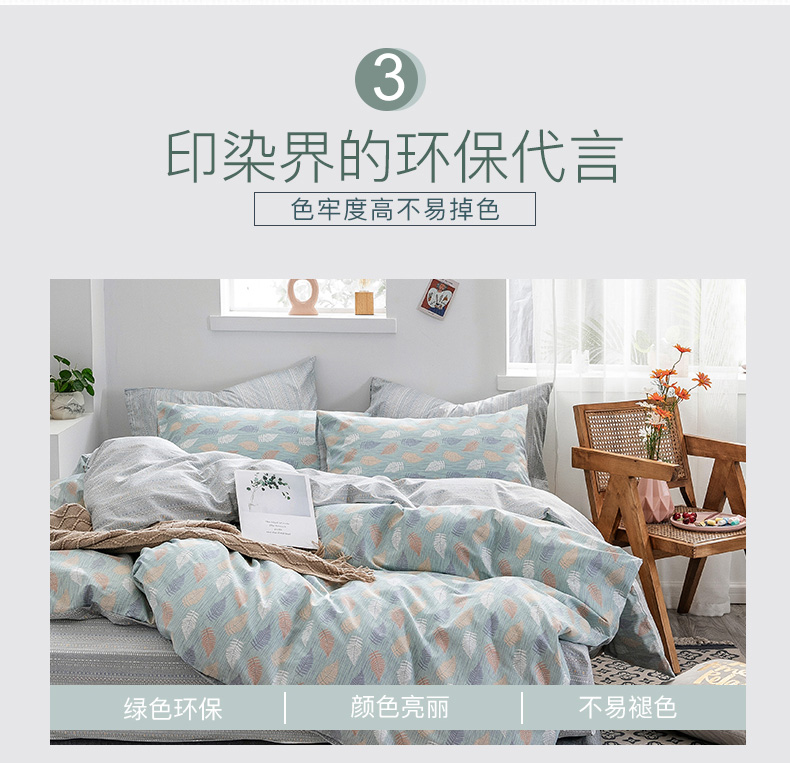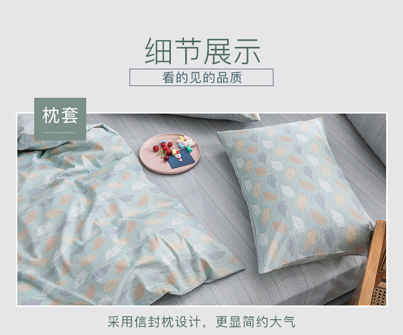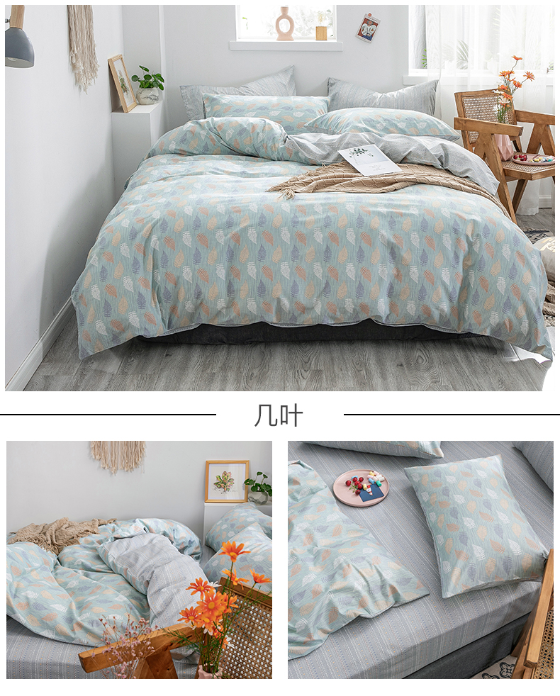商品名称:绫韵家纺 13372ins风全棉斜纹纯棉小清新床上四件套三件套 几叶