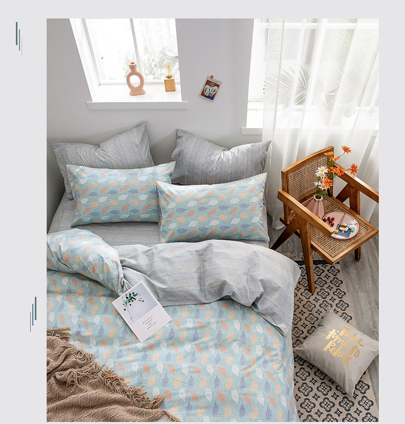 绫韵家纺 13372ins风全棉斜纹纯棉小清新床上四件套三件套 几叶