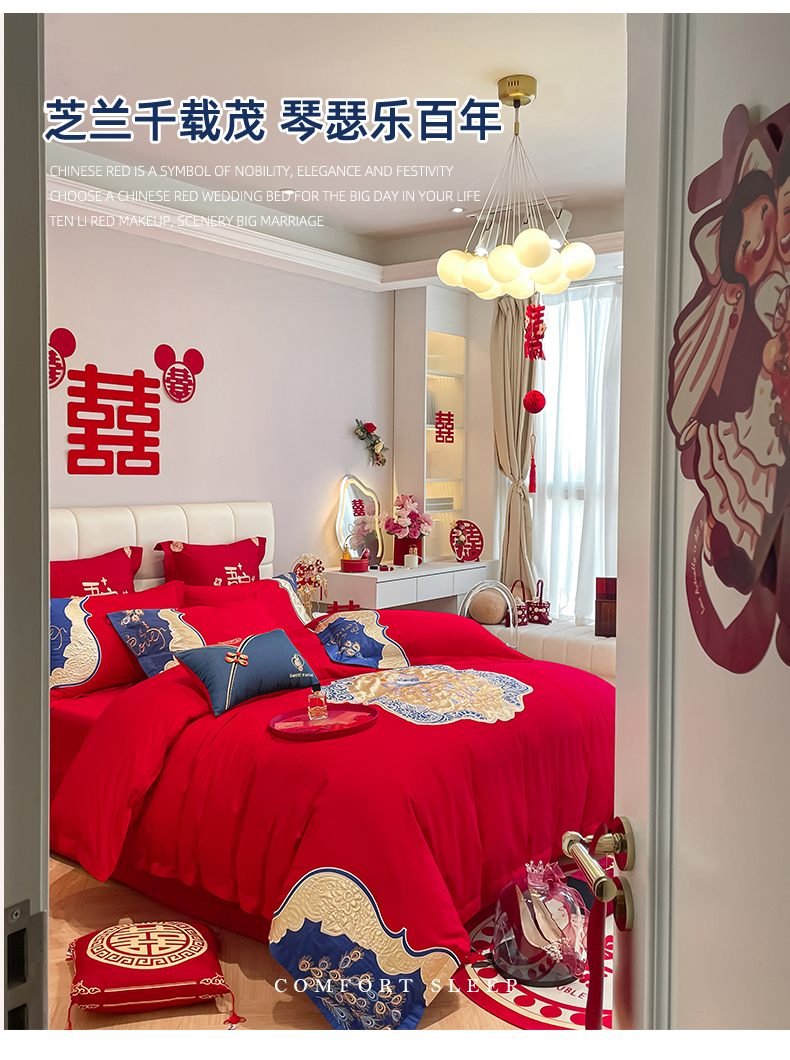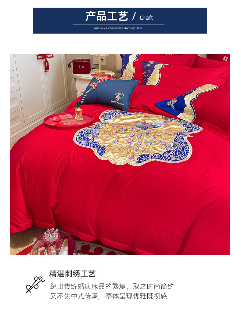 当前位置: 91家纺网 > 商品网购 > 床品套件 > 四件套 > 婚庆四件套 > 玉雅家纺 2025新款长绒棉牛仔国潮凤刺绣婚庆四件套 良缘由夙缔