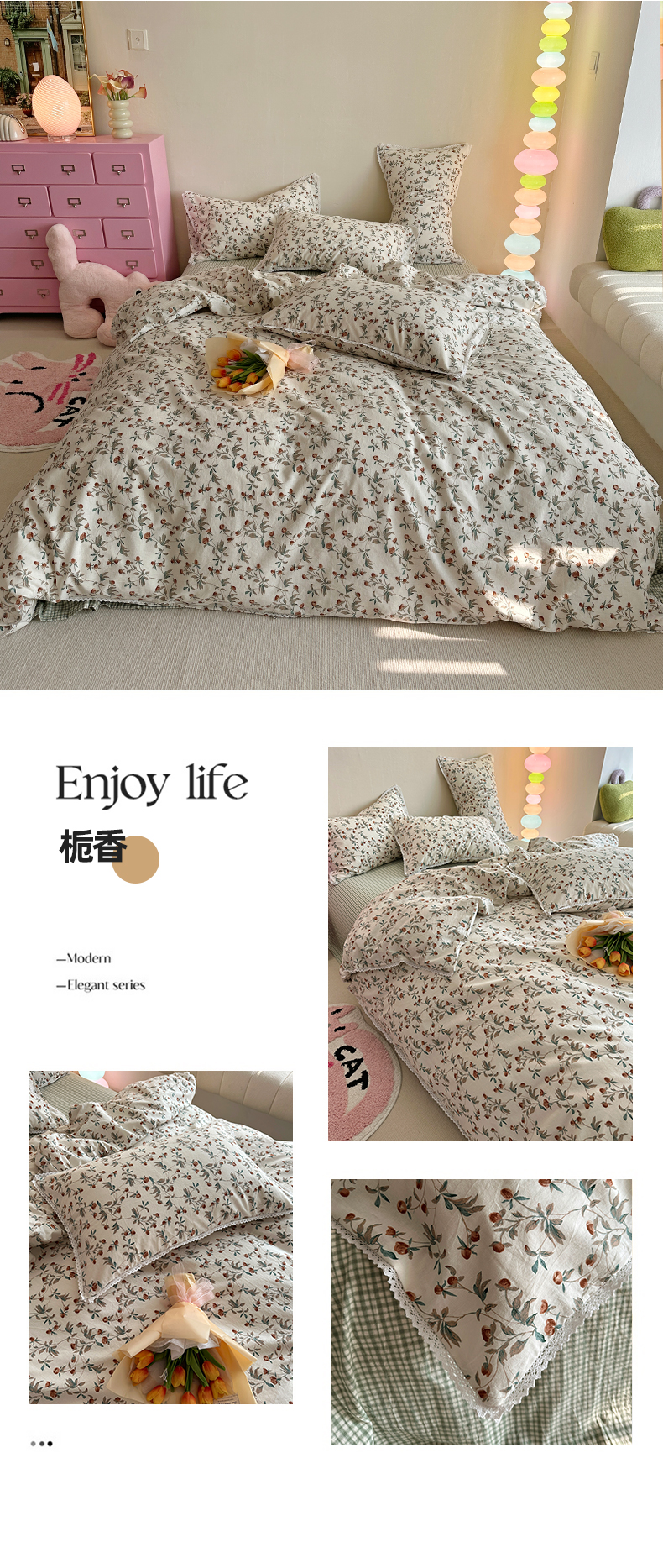 商品名称:千朵 2023新款全棉水洗带边四件套 栀香