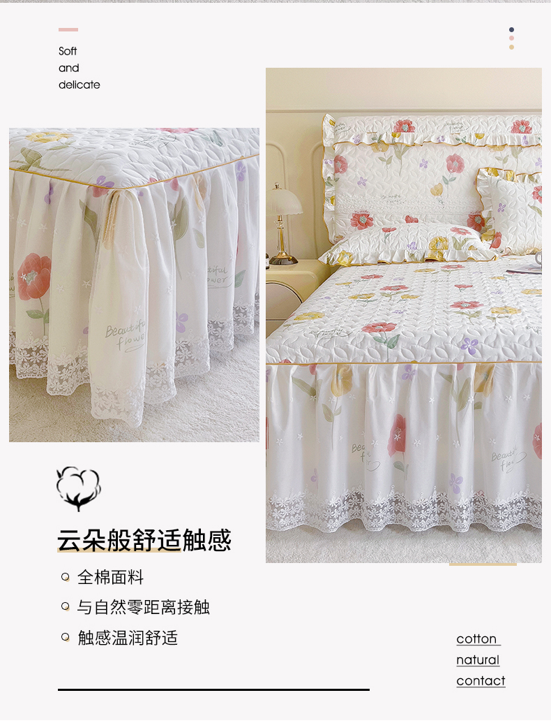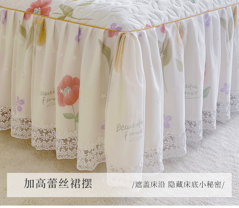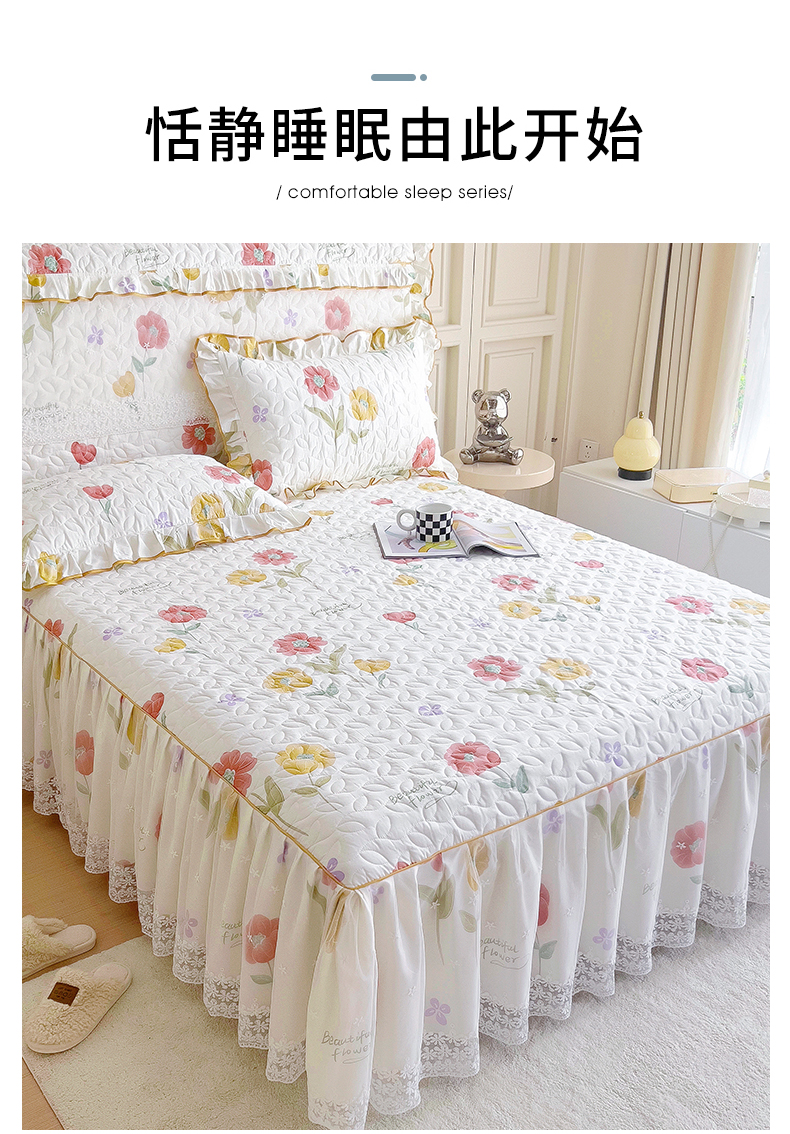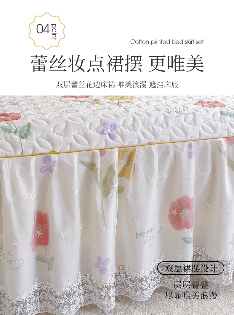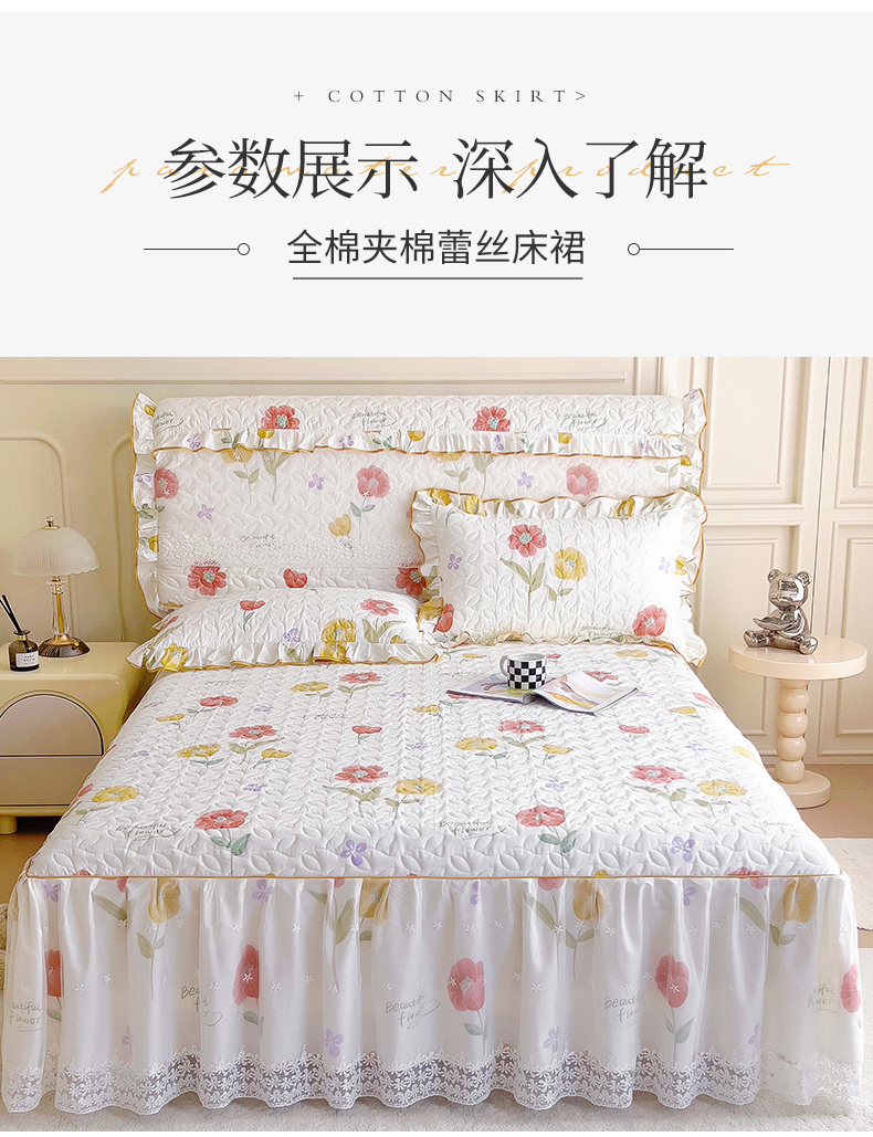 十个点 2024新款印花夹棉蕾丝单床裙-玲珑 素锦