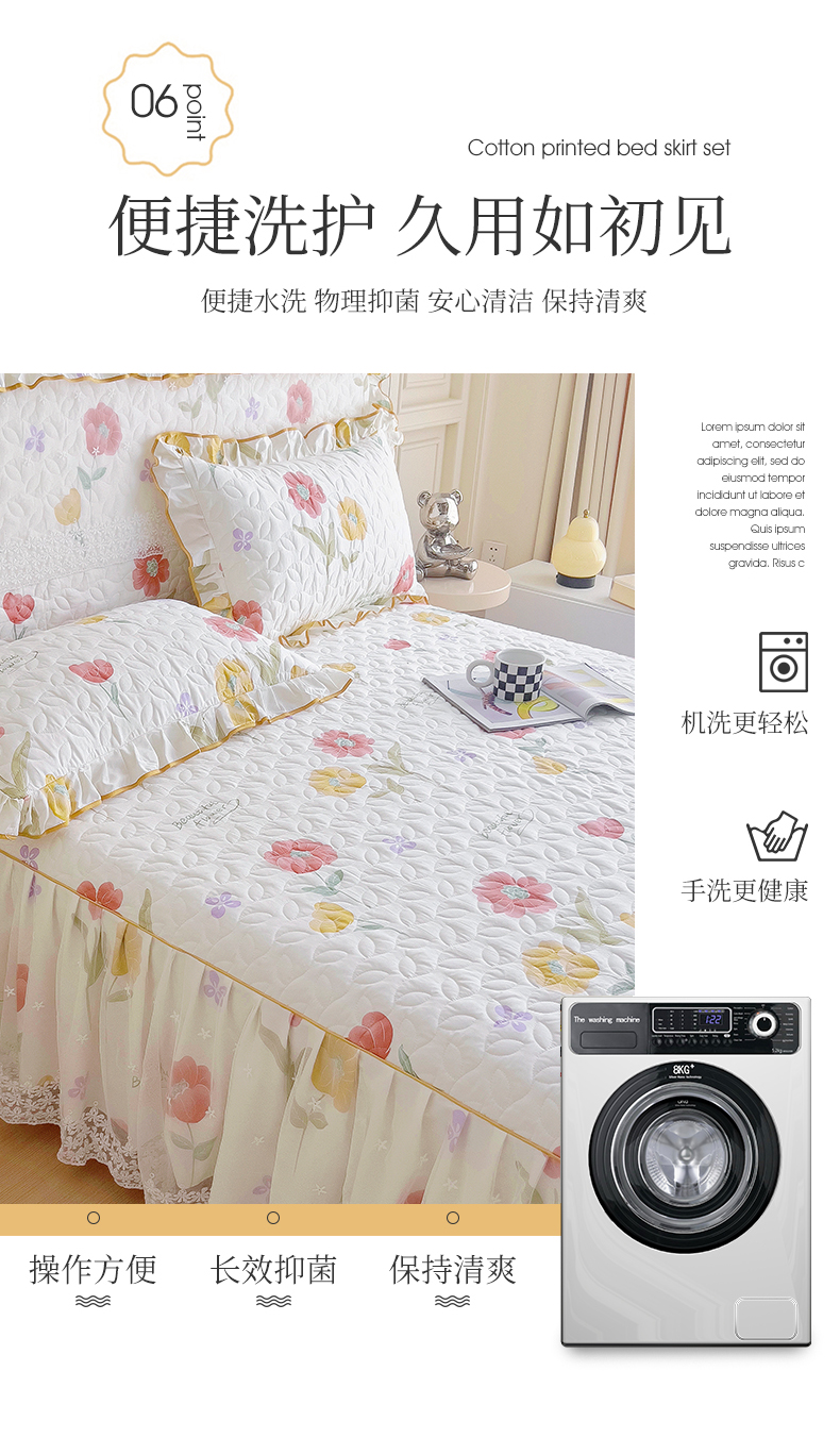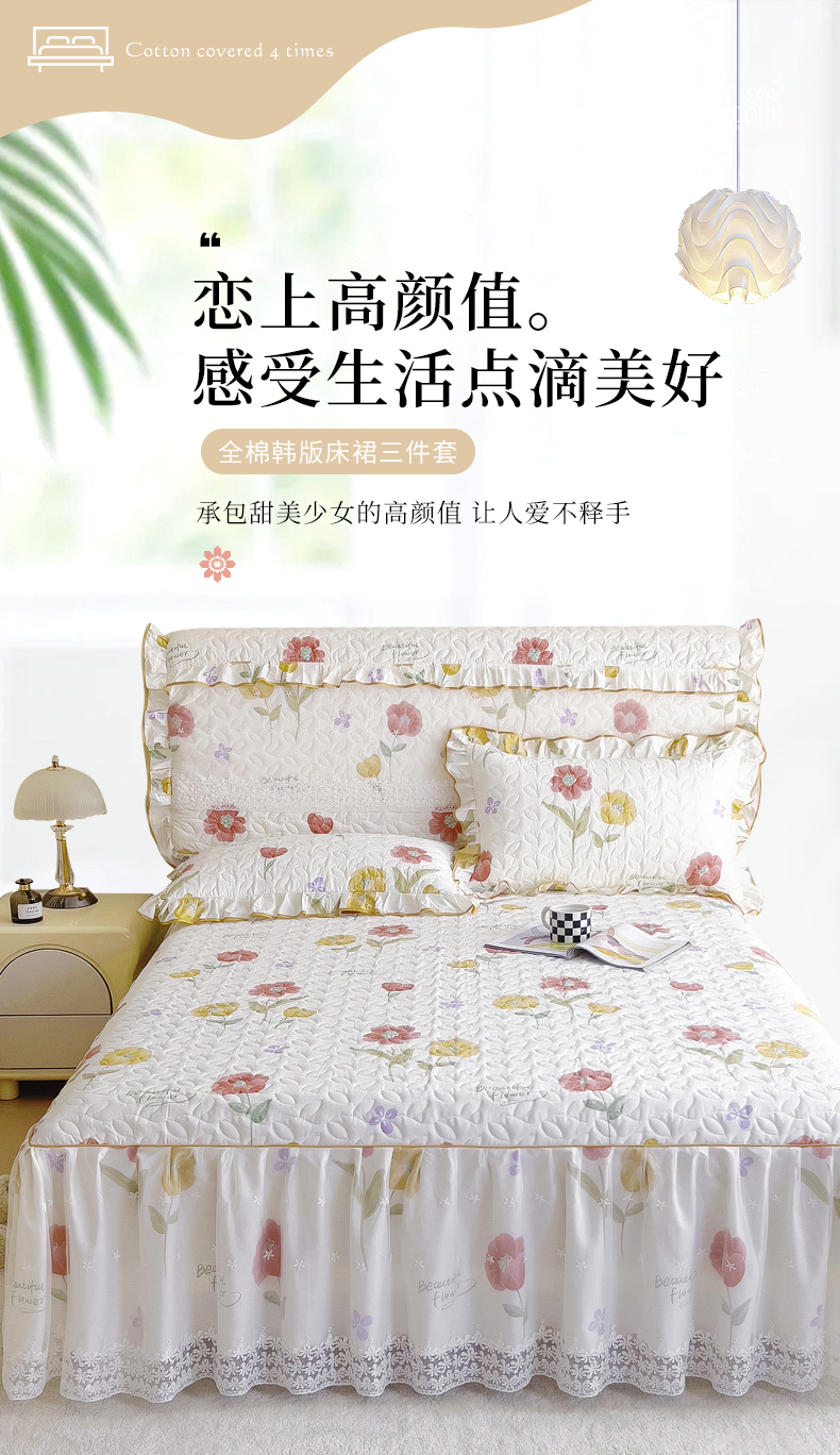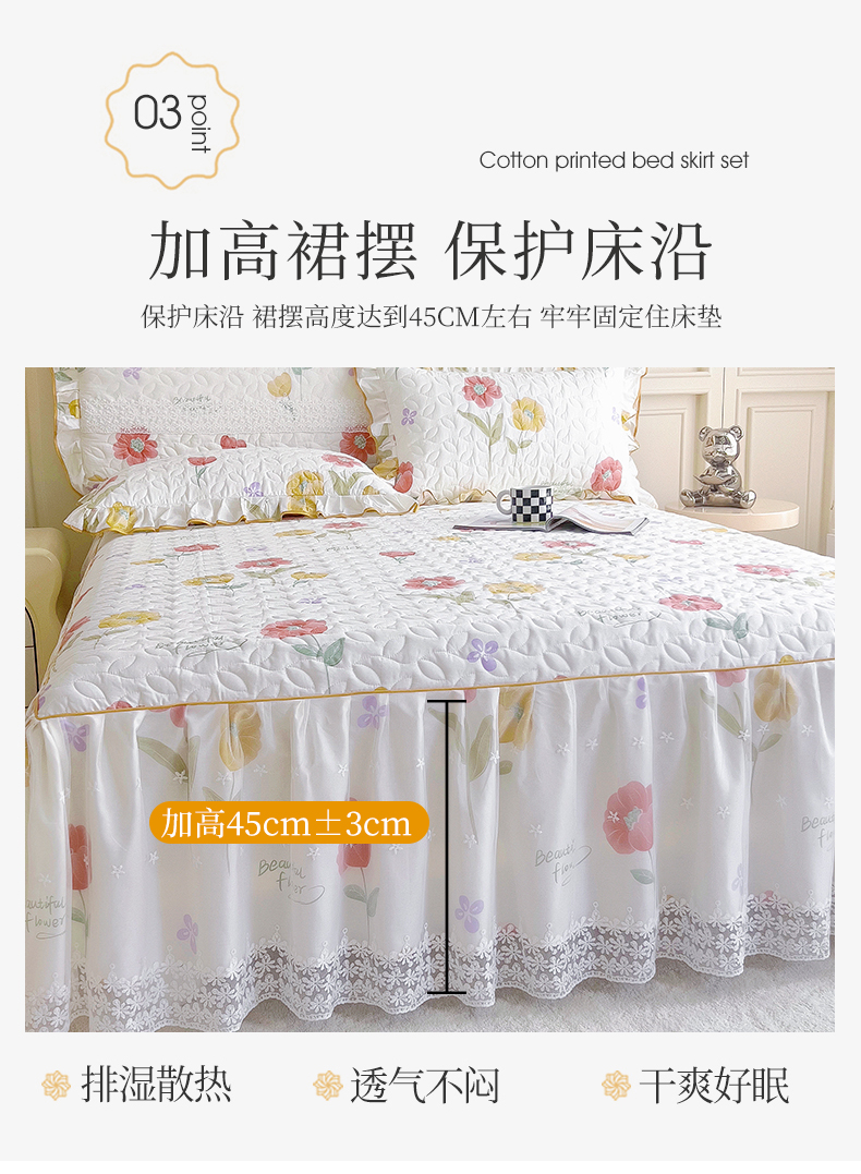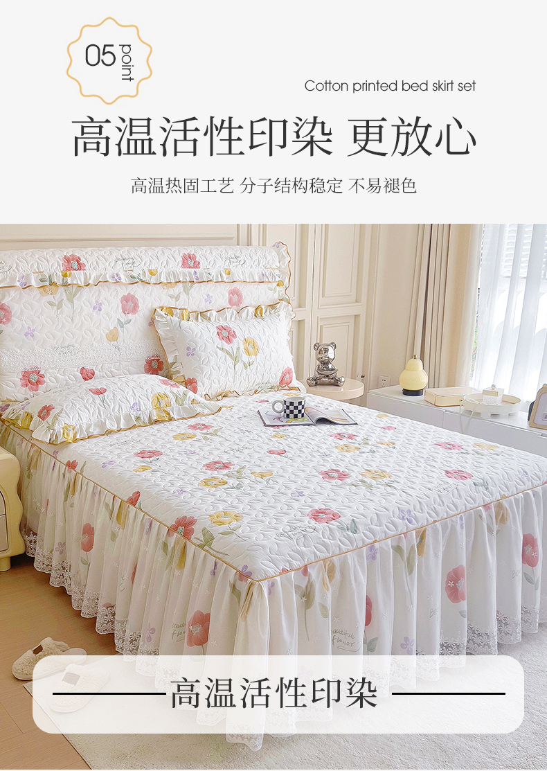 十个点 2024新款印花夹棉蕾丝单床裙-玲珑 素锦
