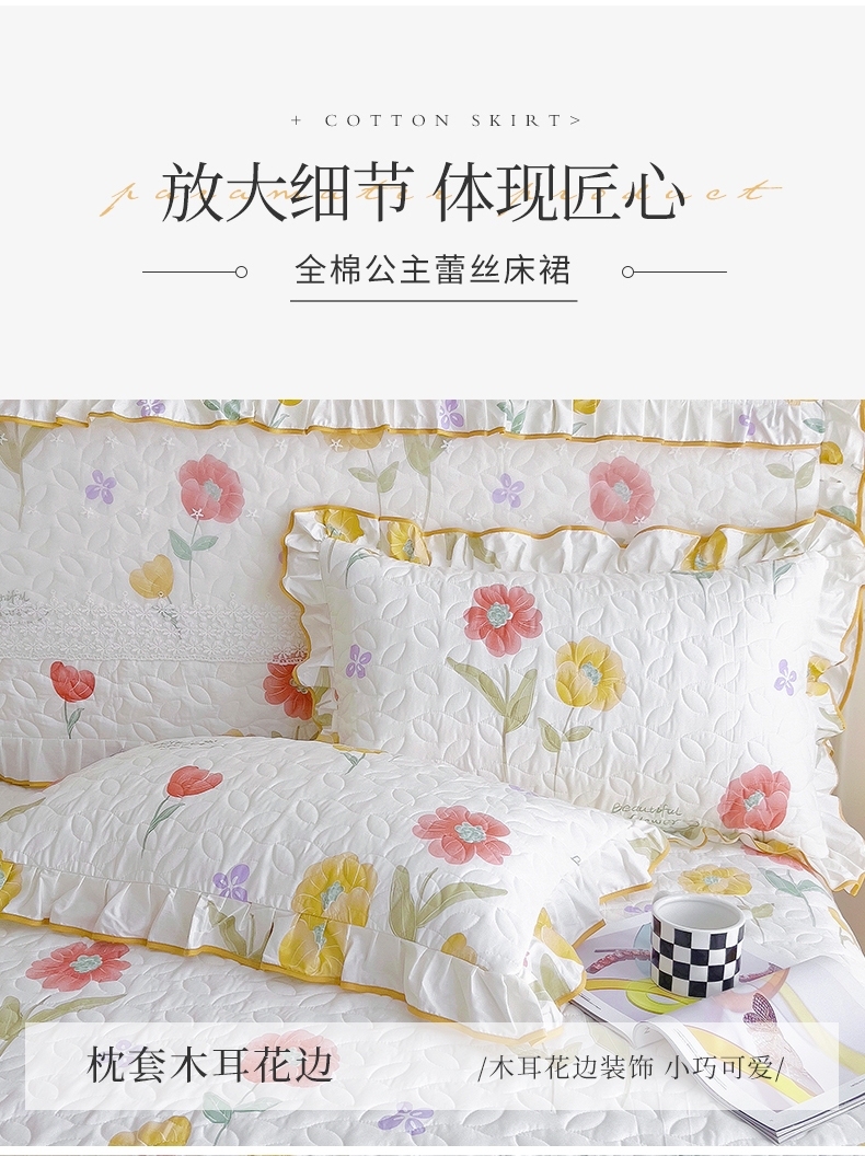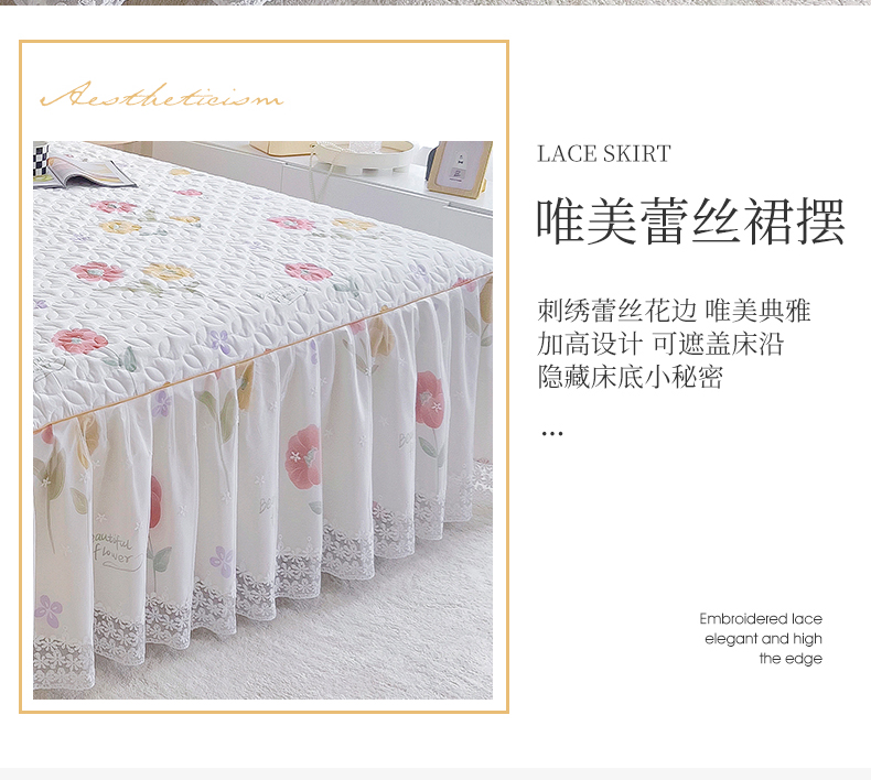 商品名称:十个点 2024新款印花夹棉蕾丝单床裙-玲珑 素锦