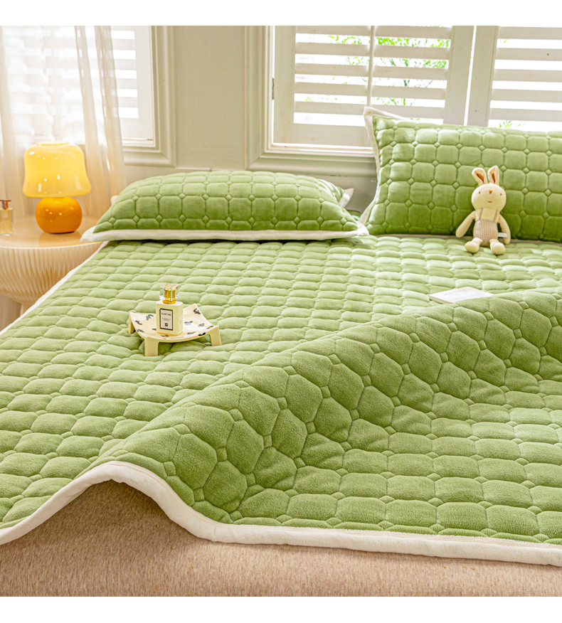 凡客家居 2025新款加厚牛奶绒夹棉床垫 苹果绿