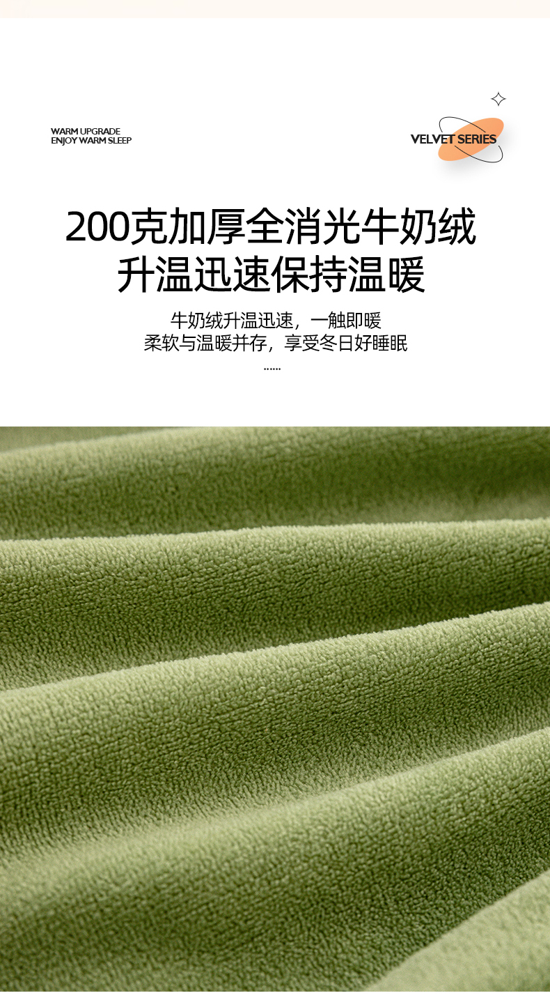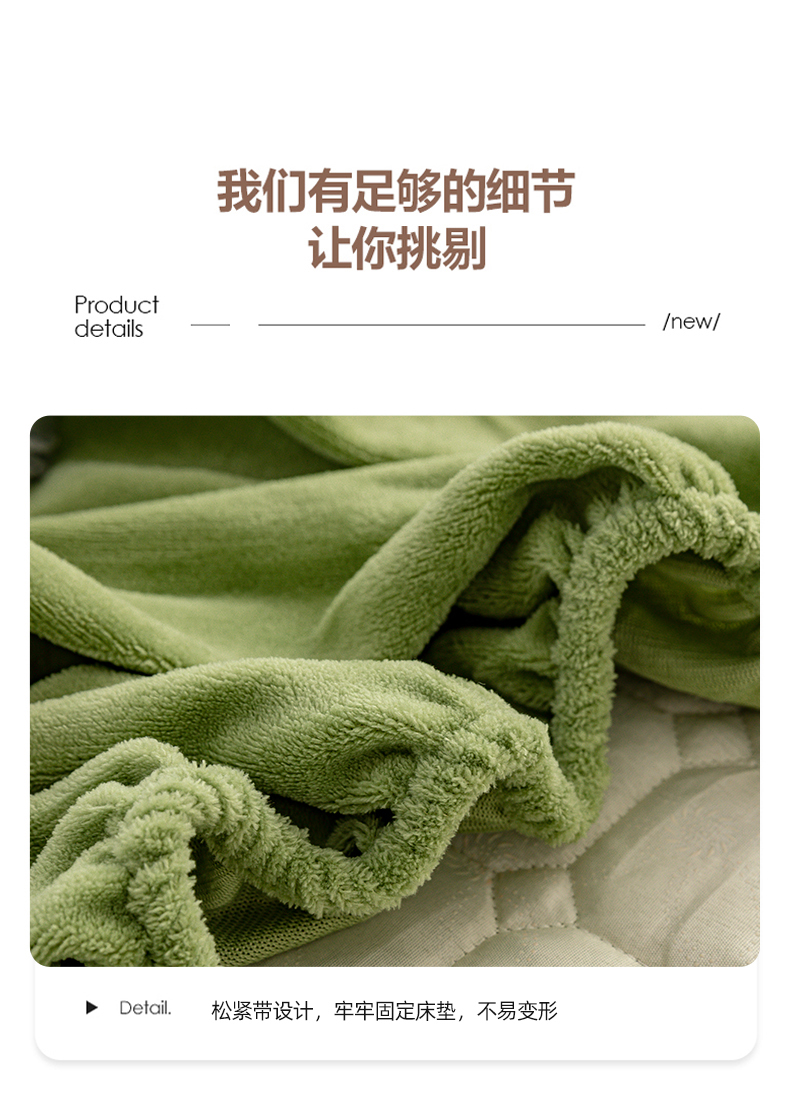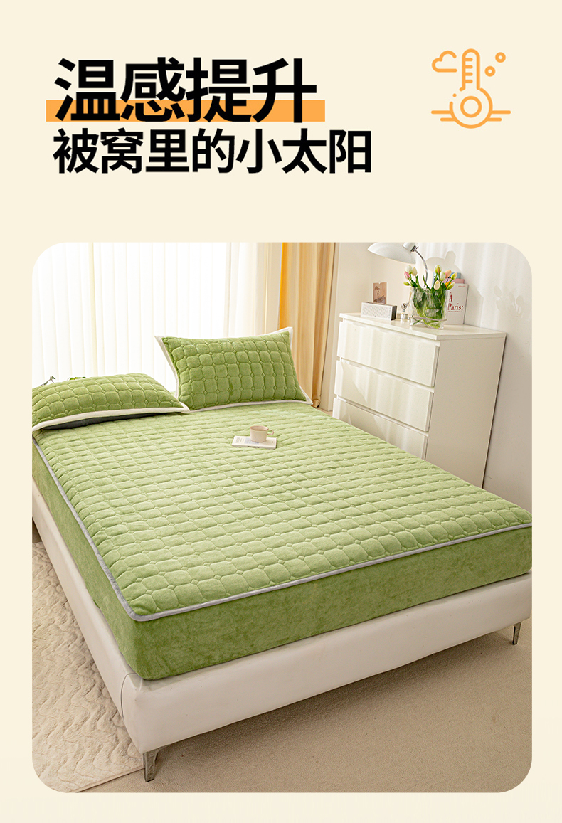 商品名称:凡客家居 2024新款加厚牛奶绒夹棉床笠 豆绿