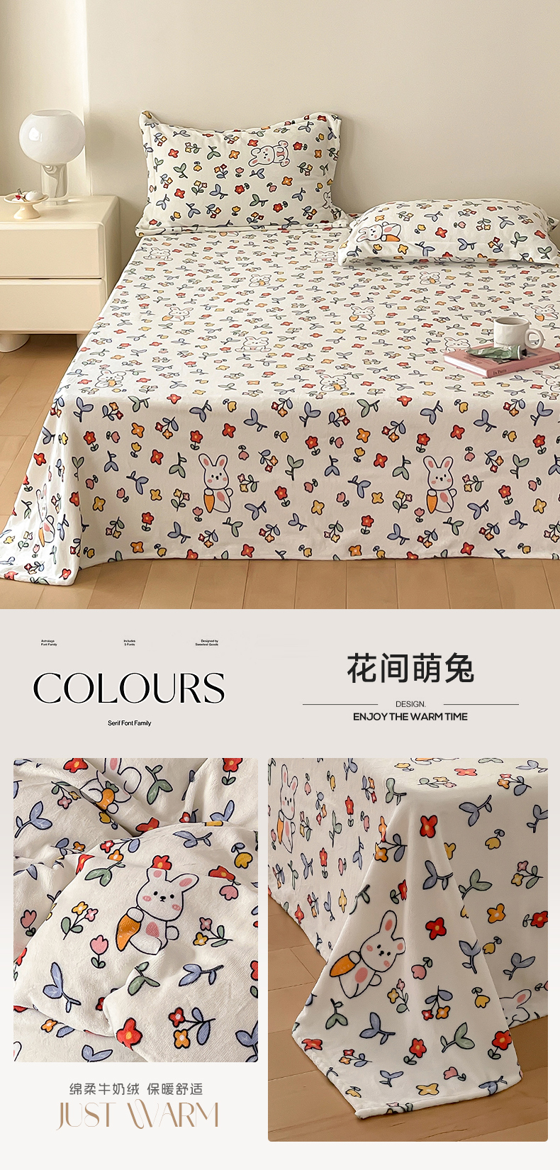 (总)时光里 2023新款全消光加厚牛奶绒印花单品单床单