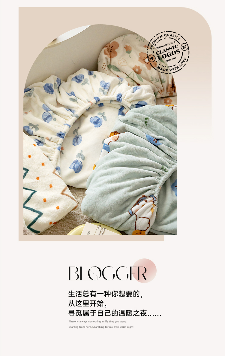 时光里 2023新款全消光加厚牛奶绒印花单品单床笠 蜜桃