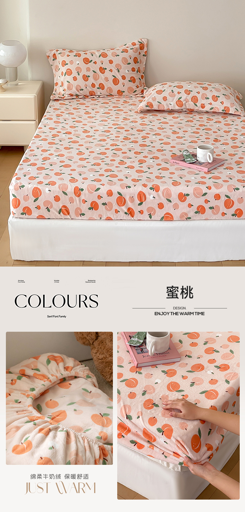 商品名称:时光里 2023新款全消光加厚牛奶绒印花单品单床笠 蜜桃