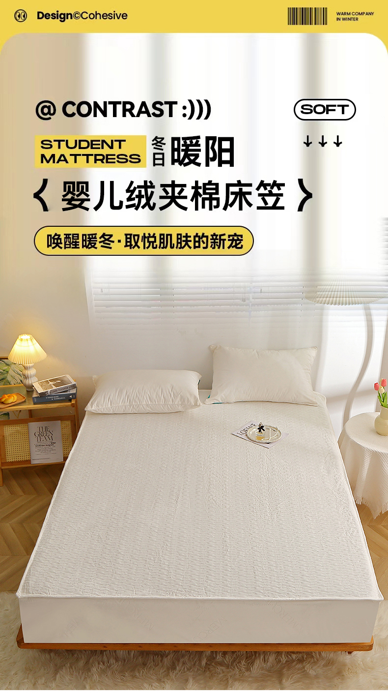 (总)席之家 2023新款暖阳保暖宝宝绒夹棉床笠