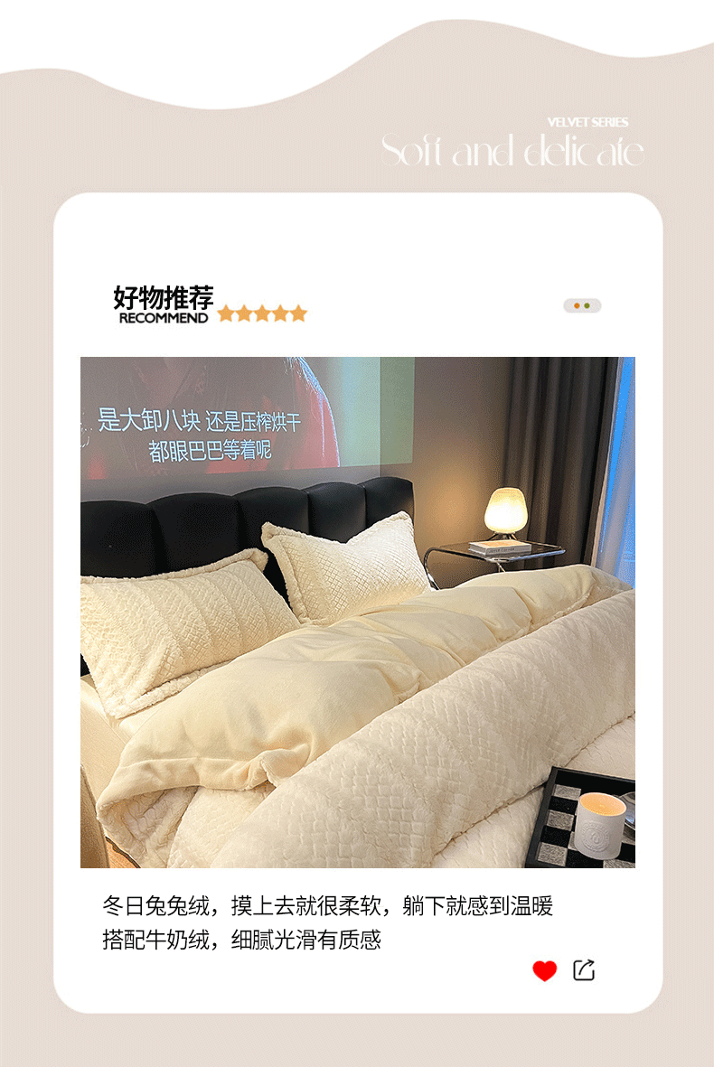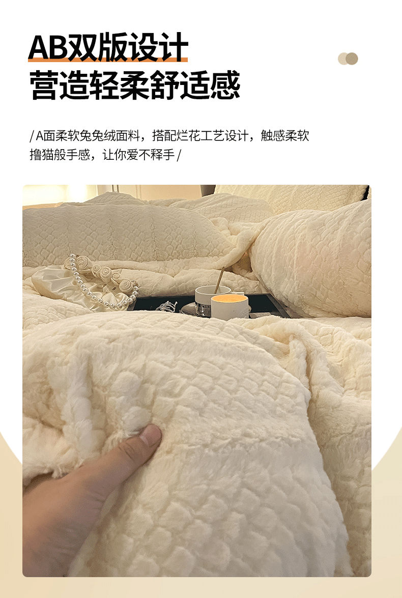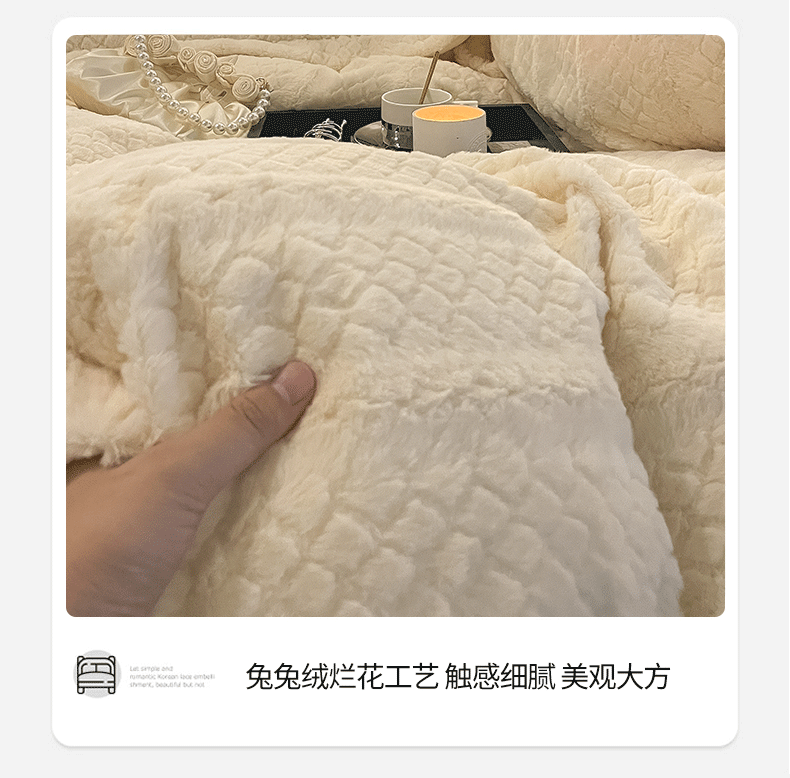 商品名称:米奈家居 2024新款高克重兔兔绒立体雕花四件套 奶油白