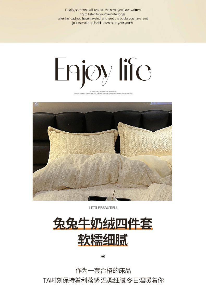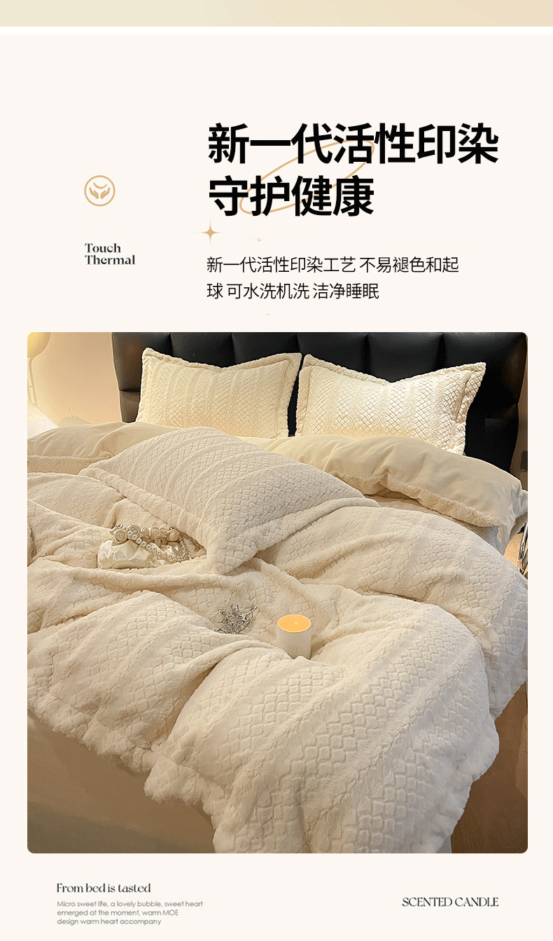 米奈家居 2024新款高克重兔兔绒立体雕花四件套 奶油白