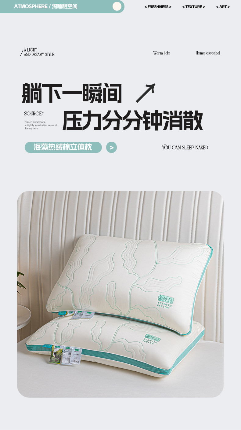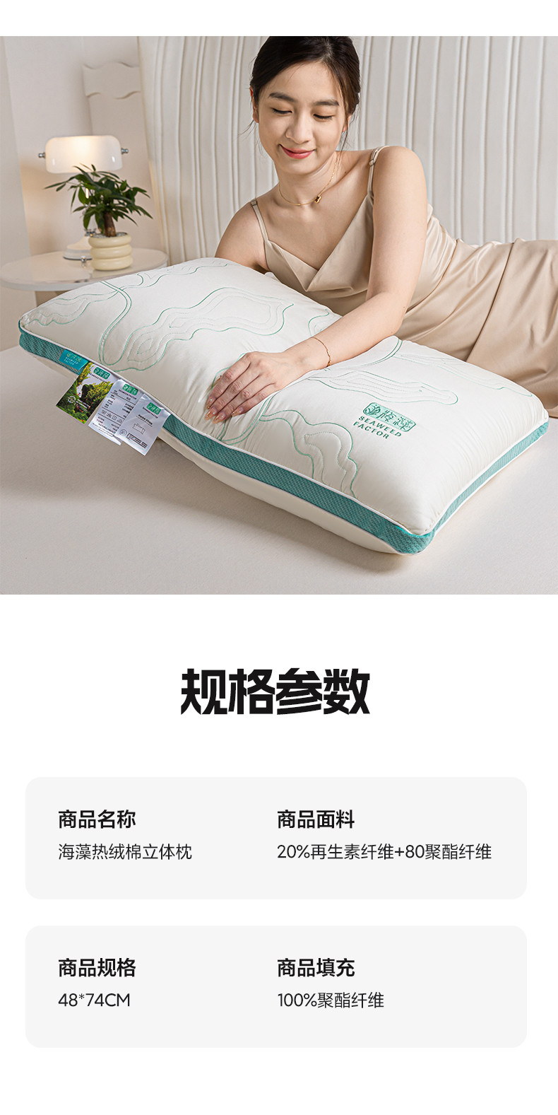 当前位置: 91家纺网 > 商品网购 > 枕头/枕芯/保健枕/颈椎枕 > 普通枕芯 > (总)歌历斯家纺 2023新款海藻热绒棉立体枕头枕芯