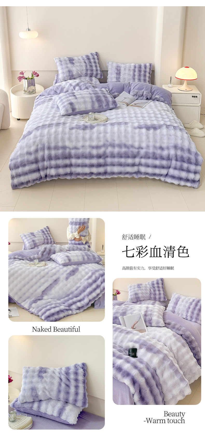 一比一 2023新款兔毛七彩印花牛奶绒四件套 七彩血清色