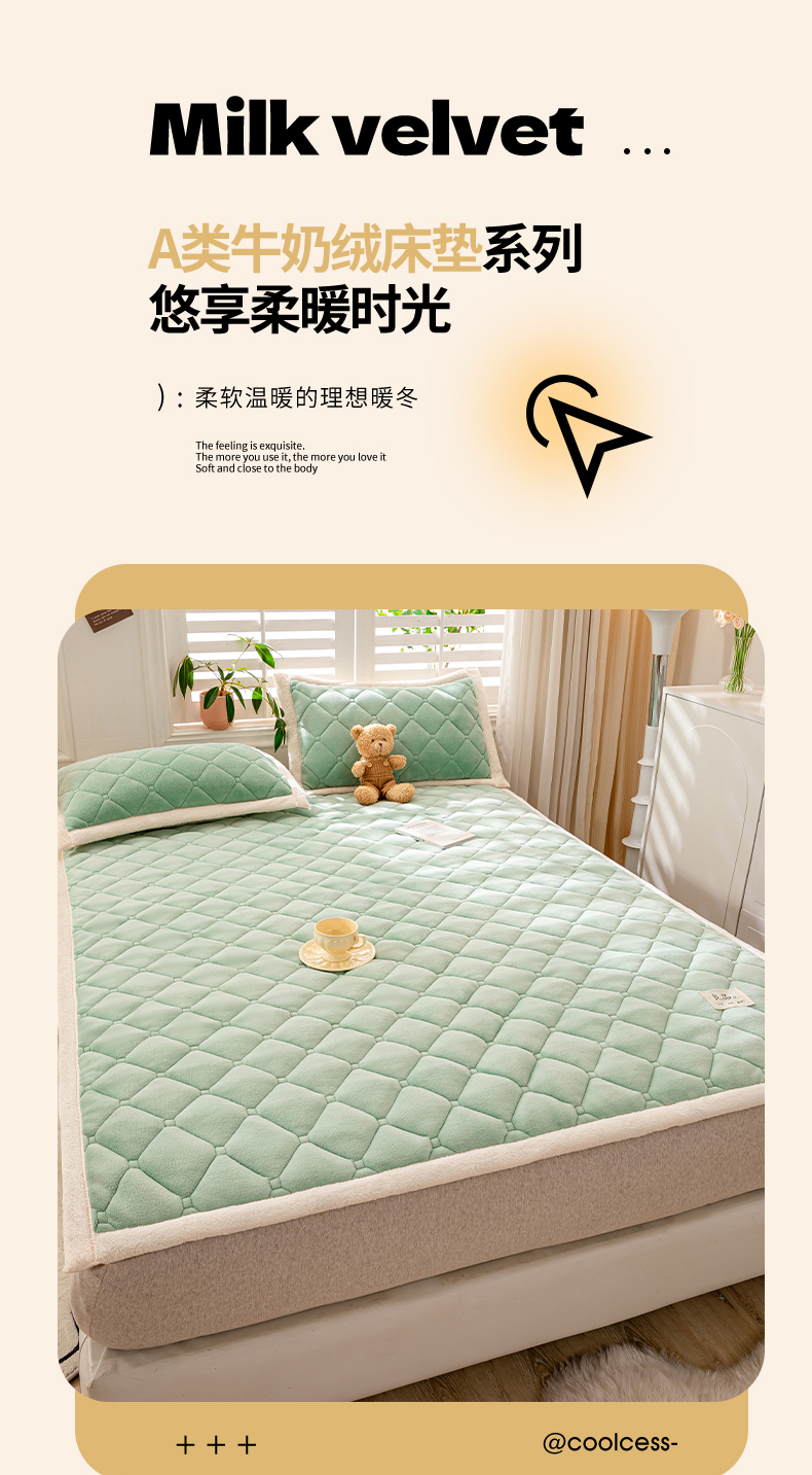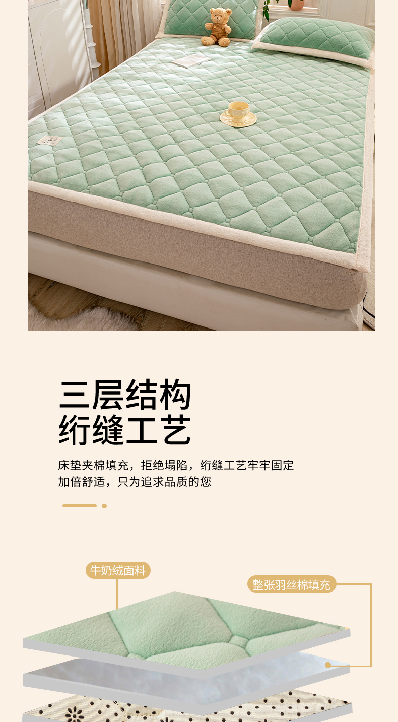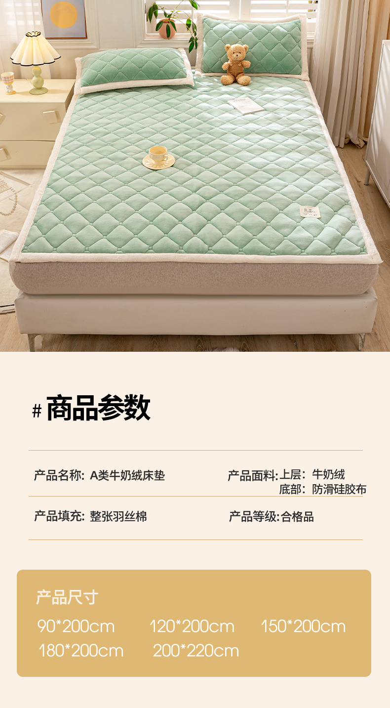 当前位置: 91家纺网 > 商品网购 > 床垫/床褥 > 普通床垫 > 慕木家纺 2025新款A类牛奶绒纯色印花加厚保暖床垫护垫床褥子 碧绿