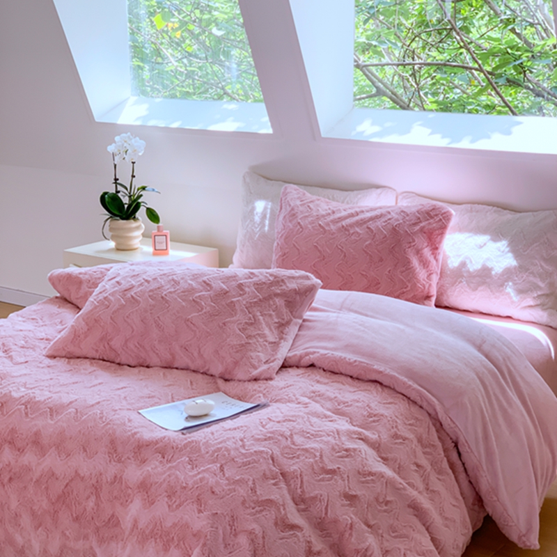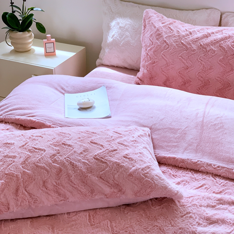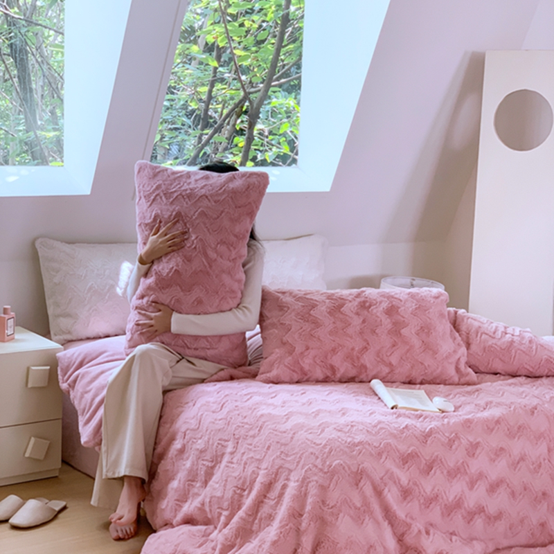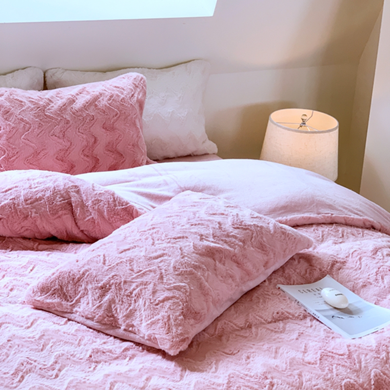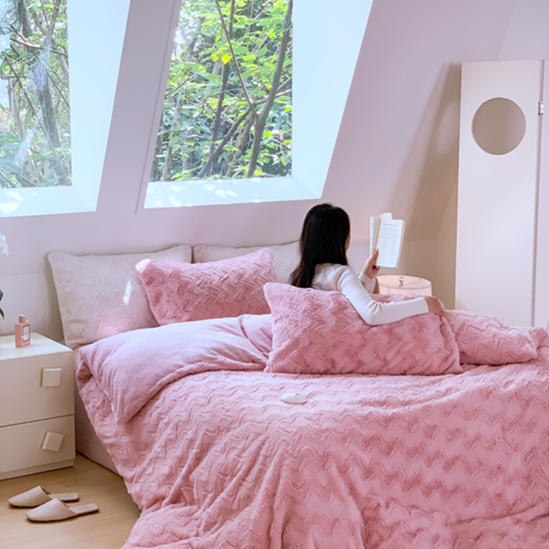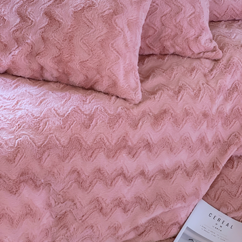 昔可家纺 2023兔兔绒四件套 粉波纹