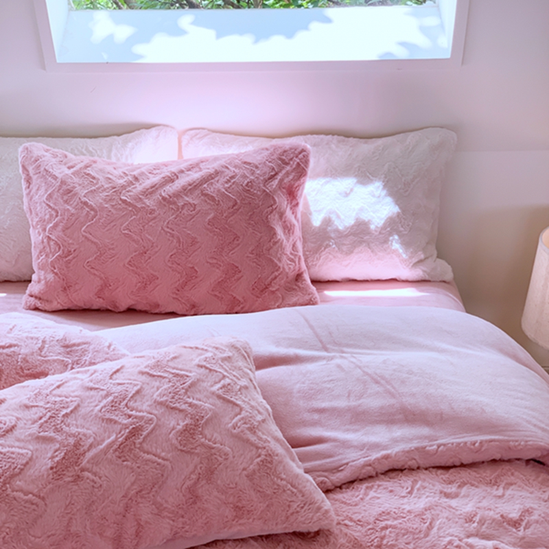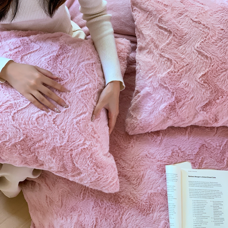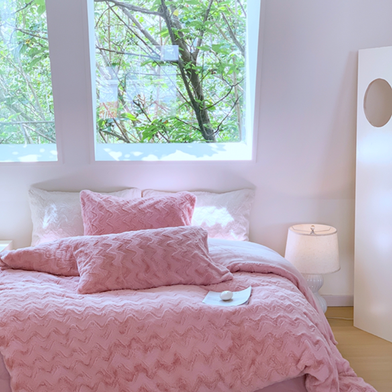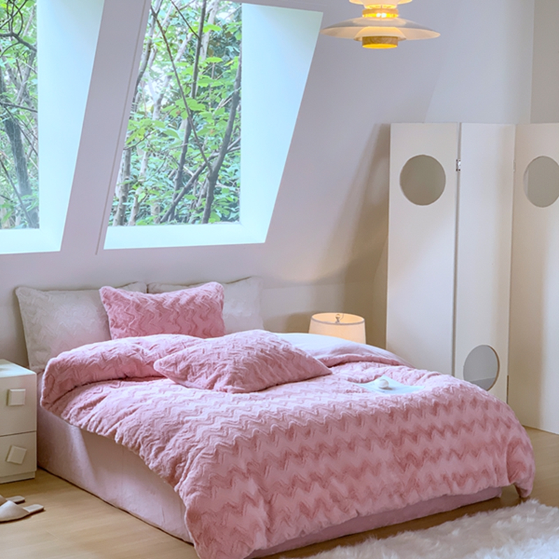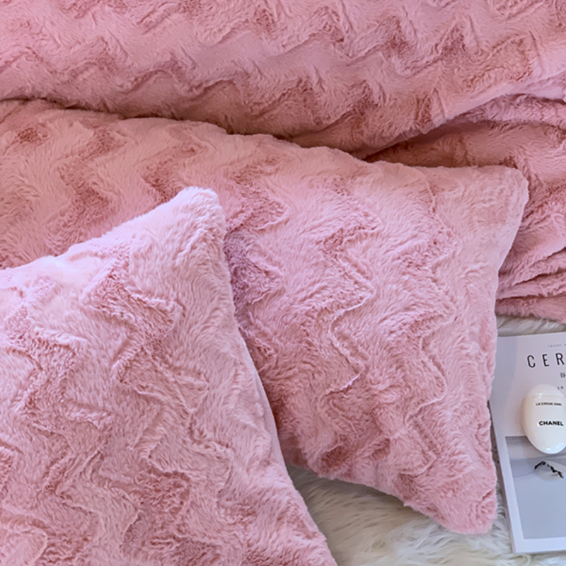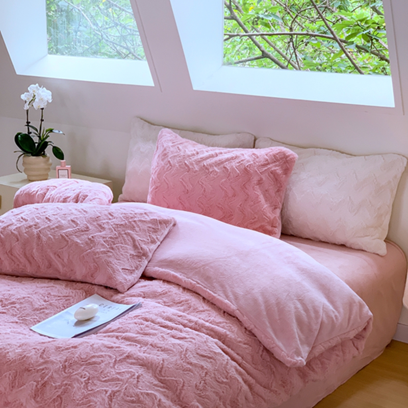 昔可家纺 2023兔兔绒四件套 粉波纹