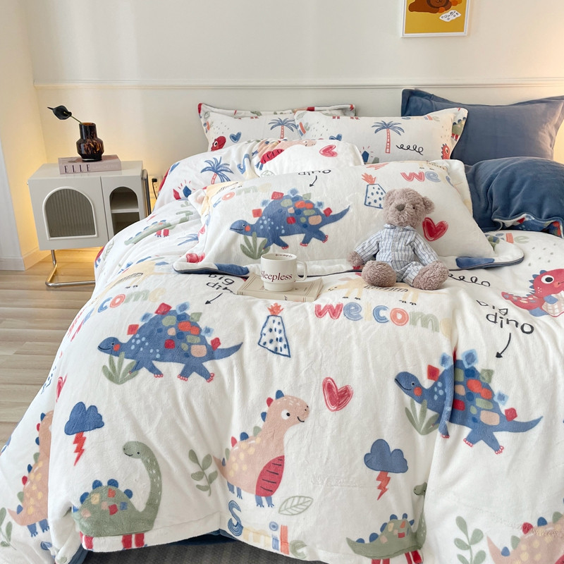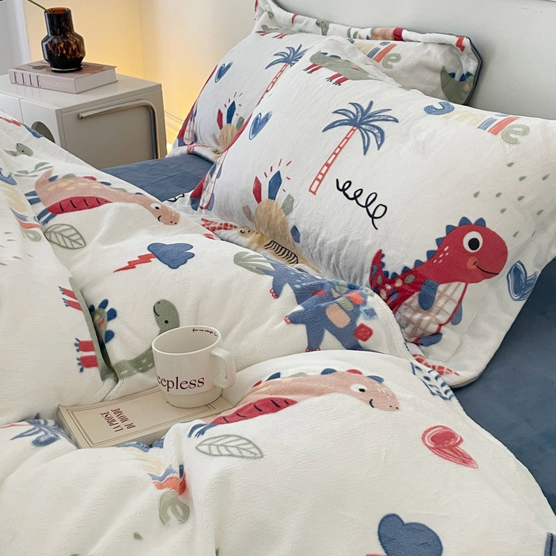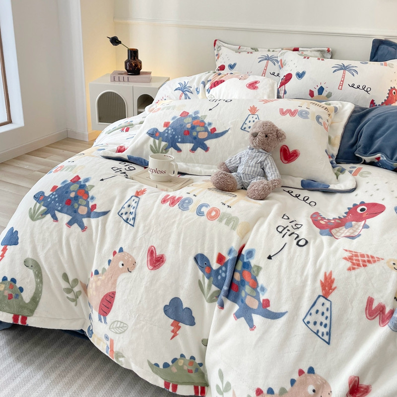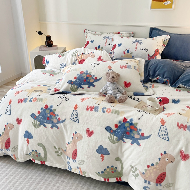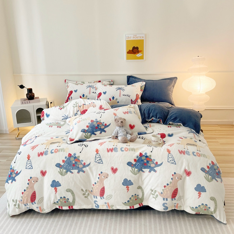 商品名称:橘滋 2023新款240克牛奶绒臻棉绒嵌条工艺四件套 侏罗纪