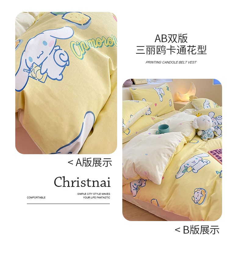 曼之夏 2023新款全棉三丽鸥卡通四件套 柠檬大耳狗