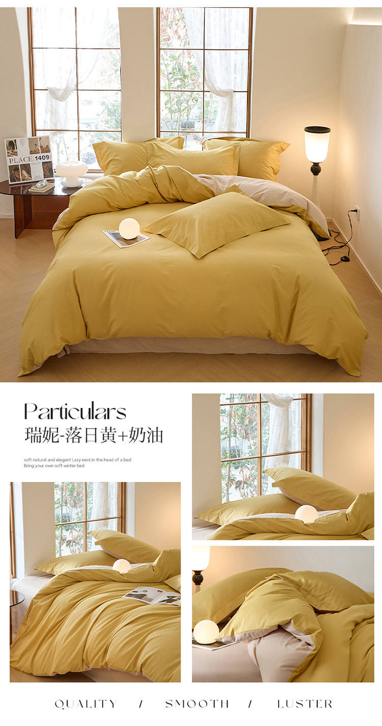 商品名称:秀色2025高端50支加厚陶瓷磨毛全棉四件套奶油风瑞妮落日黄+奶油