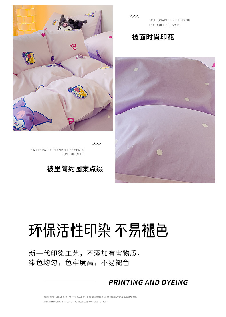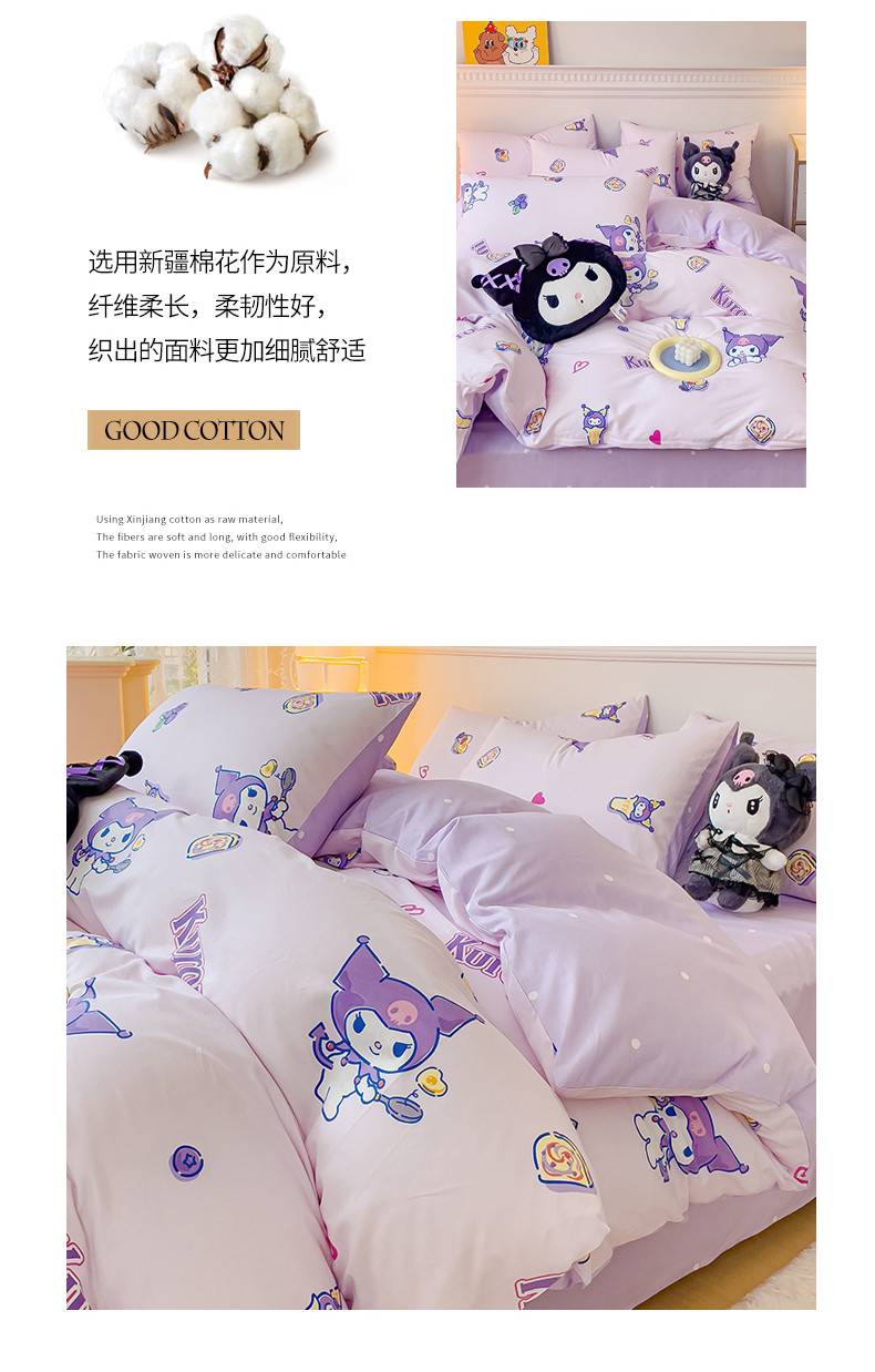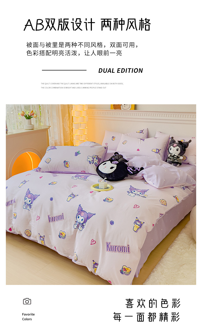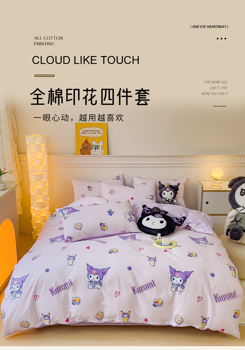 当前位置: 91家纺网 > 商品网购 > 床品套件 > 四件套 > 全棉普通四件套 > 金丝鸟家纺 2023新款全棉印花三利欧库洛米系列四件套 荷包蛋