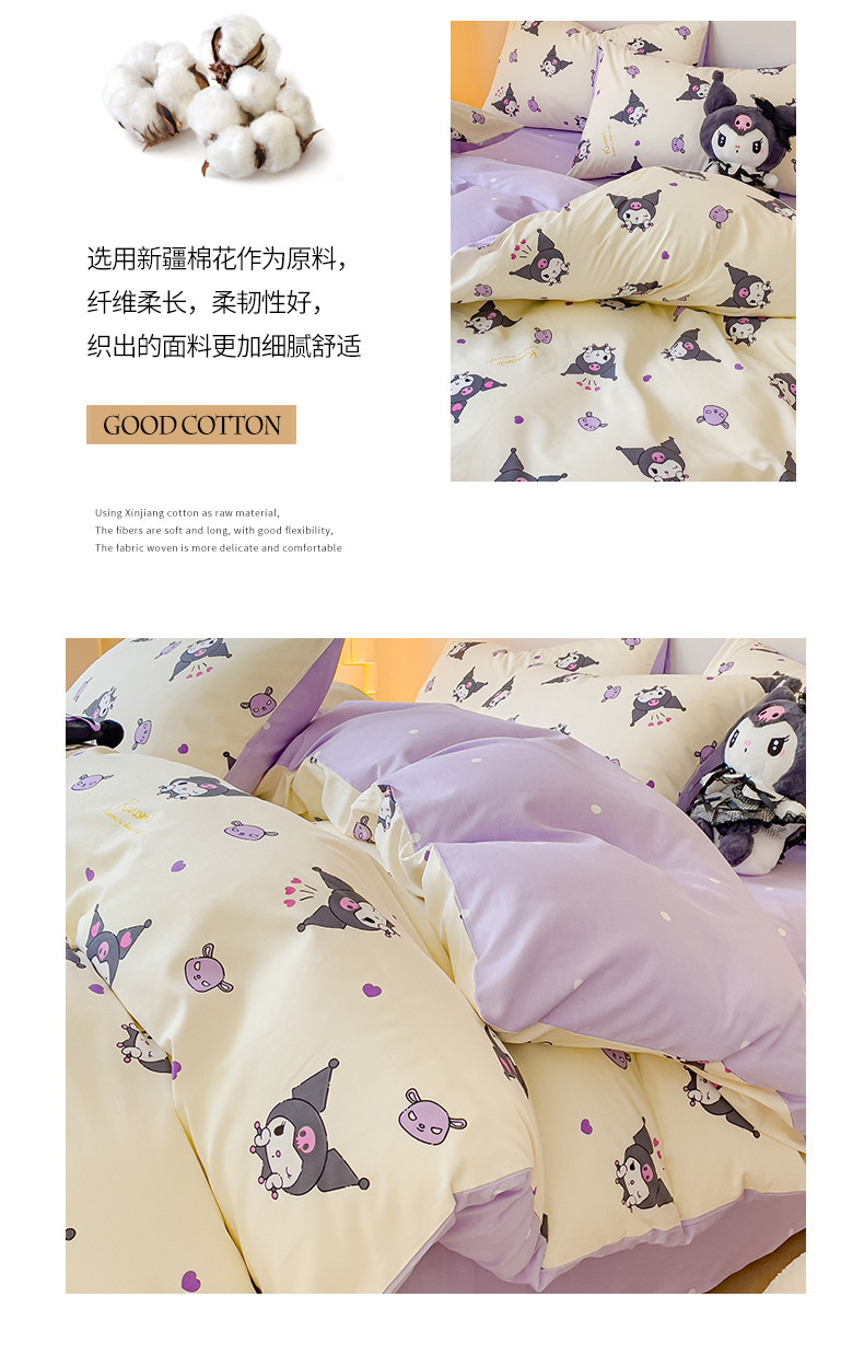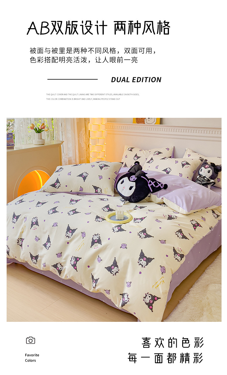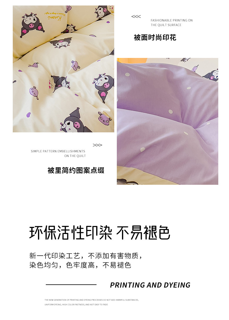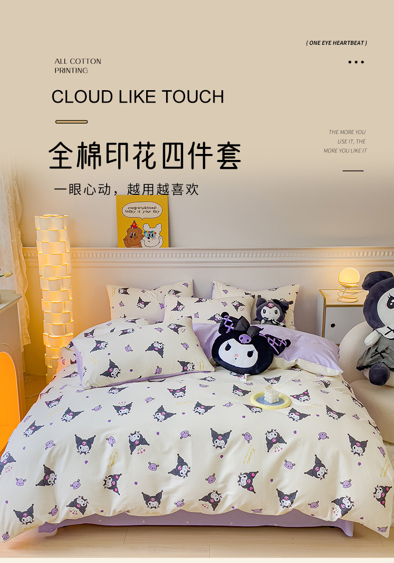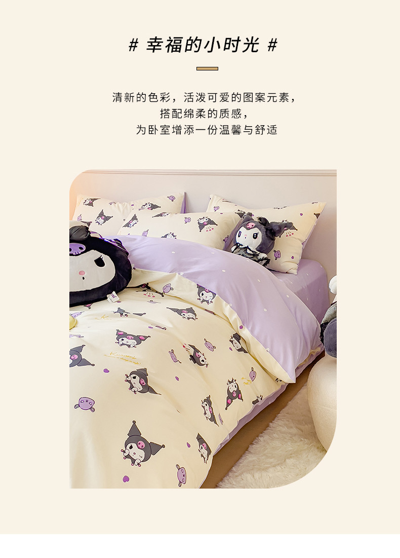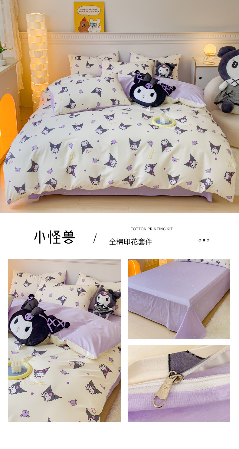 当前位置: 91家纺网 > 商品网购 > 床品套件 > 四件套 > 全棉普通四件套 > 金丝鸟家纺 2023新款全棉印花三利欧库洛米系列四件套 小怪兽