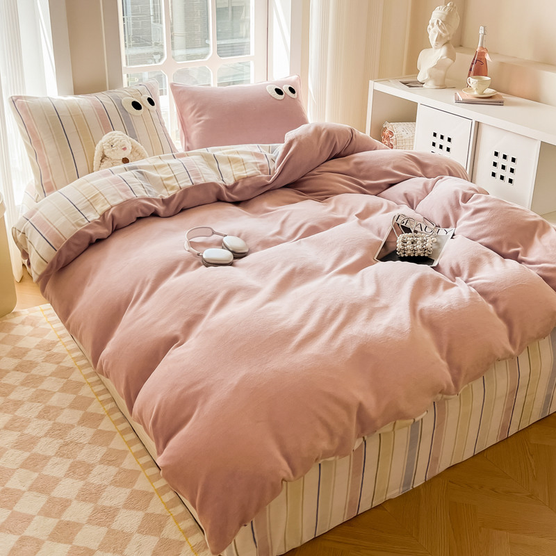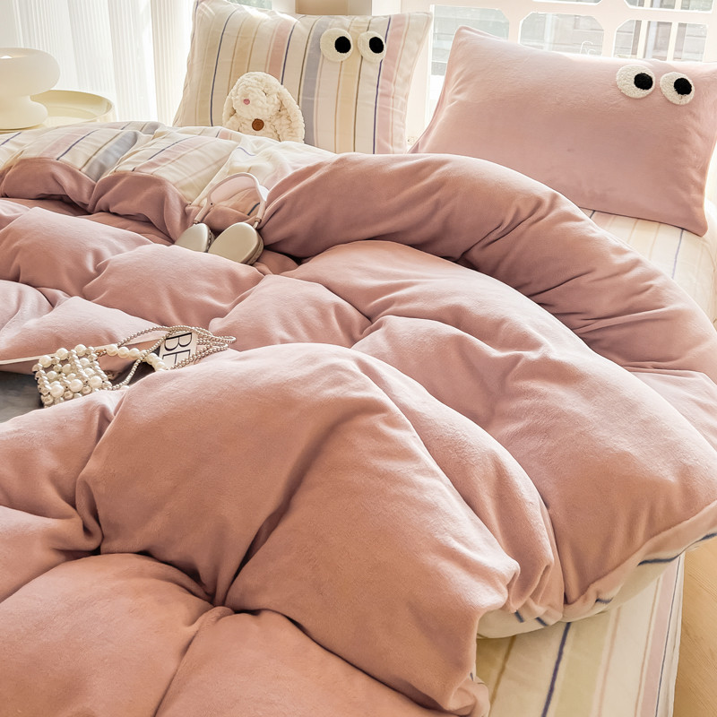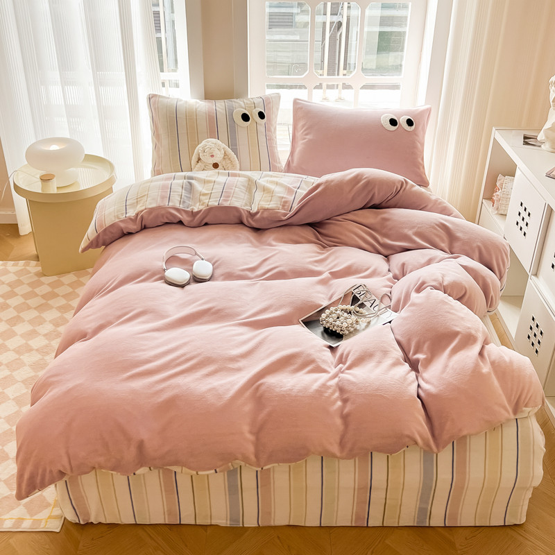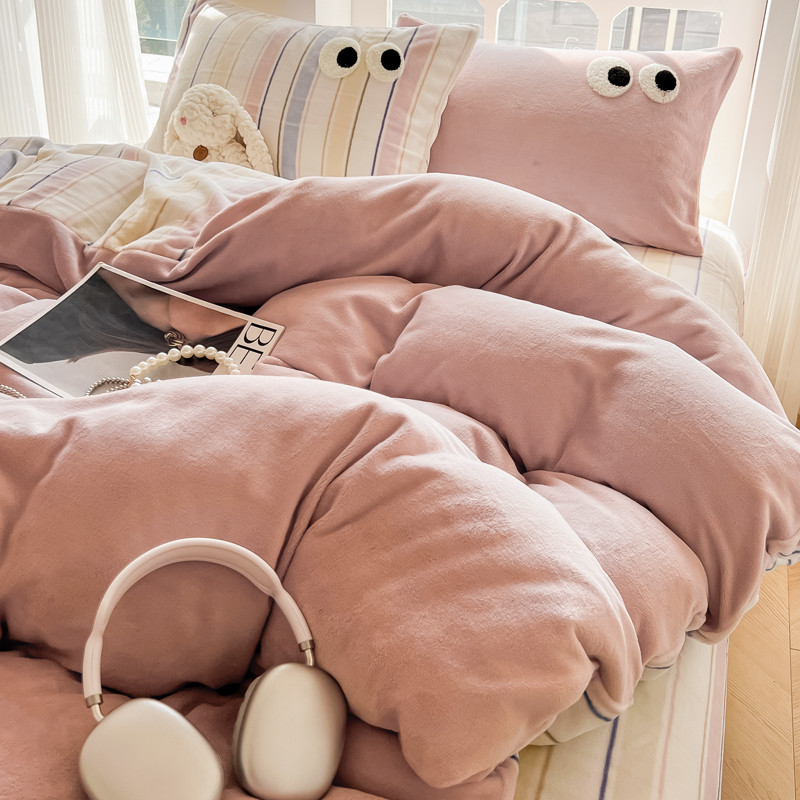 当前位置: 91家纺网 > 商品网购 > 床品套件 > 四件套 > 牛奶绒四件套 > 慕尚家纺 2025新款牛奶绒大眼睛系列四件套 露娜粉豆沙