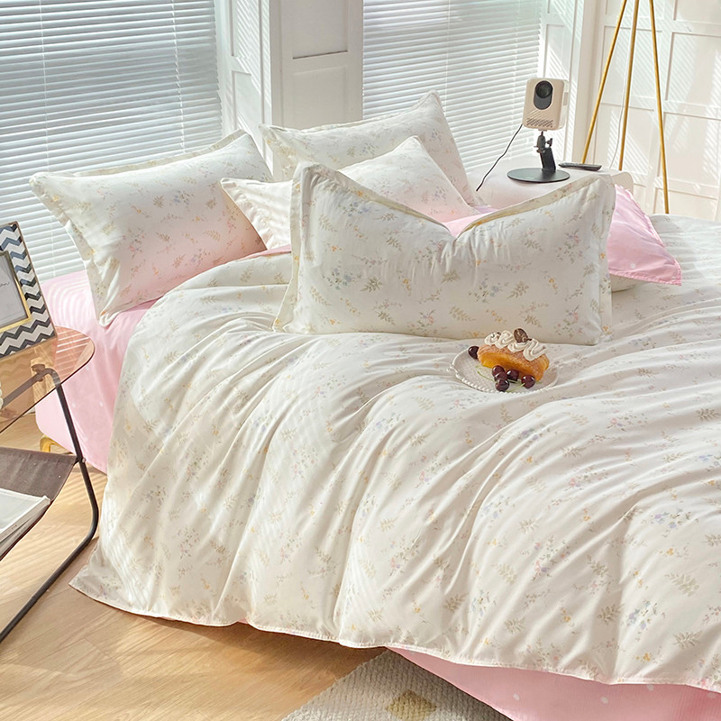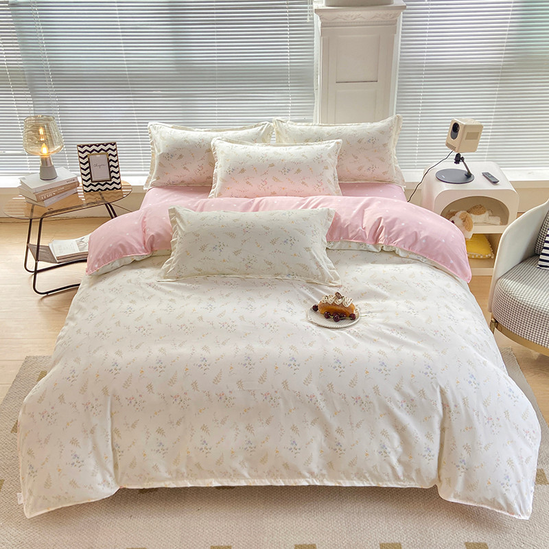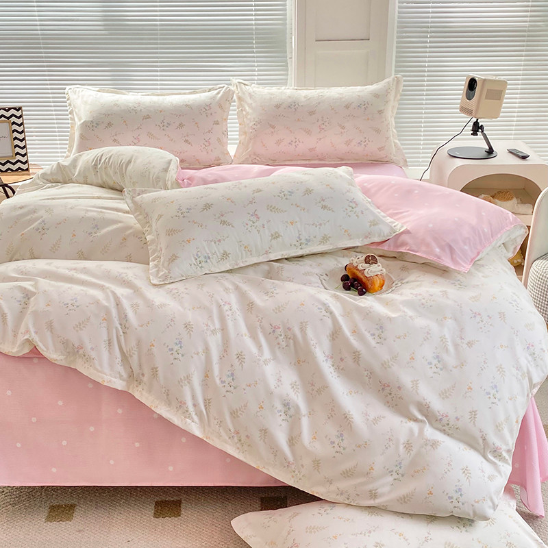 (总)楠沐家纺 2026年新款无印风学生印花四件套芦荟棉水洗棉,彩色波点,觅遇,晴空蓝格,亚麻灰格,烟雾灰格,英伦蓝格