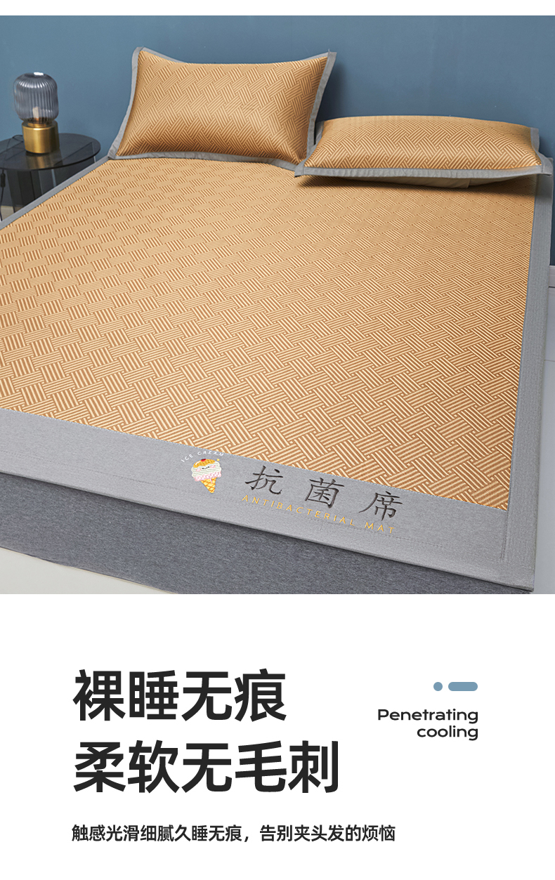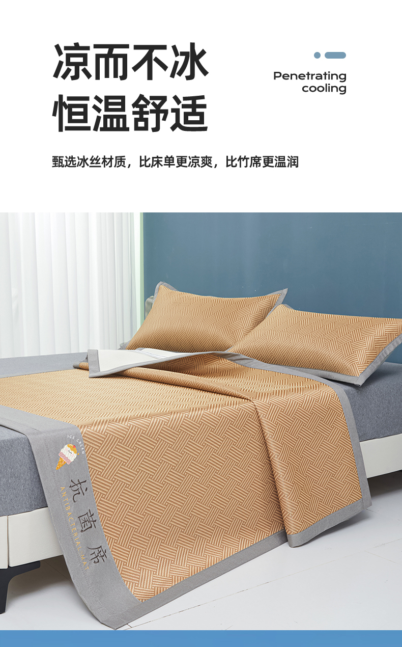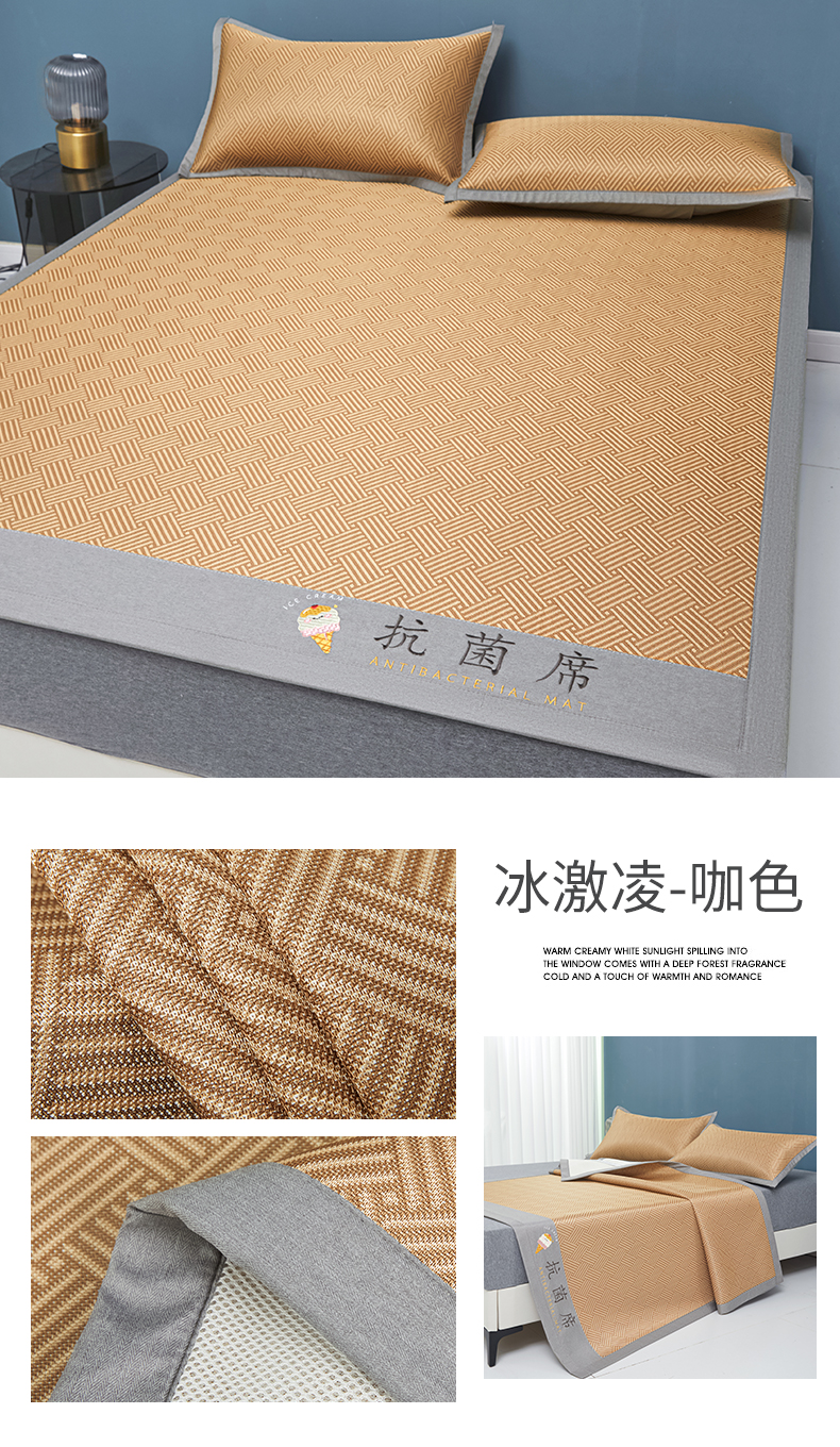 商品名称:鑫姿席业 2025新款抗菌冰激凌凉感丝冰丝席系列 冰激凌-咖色