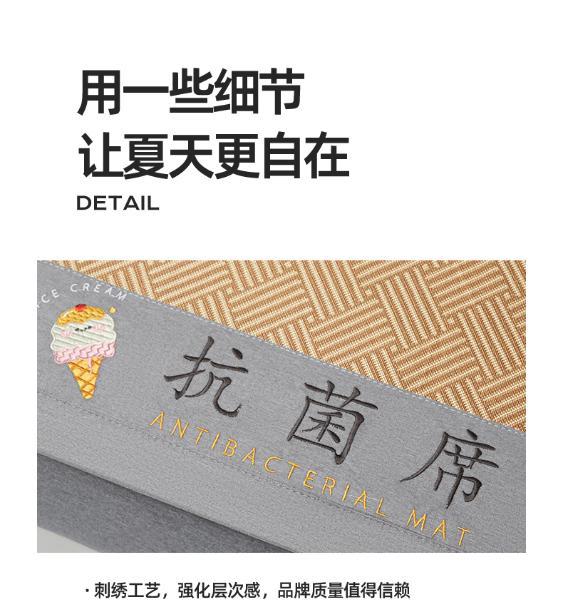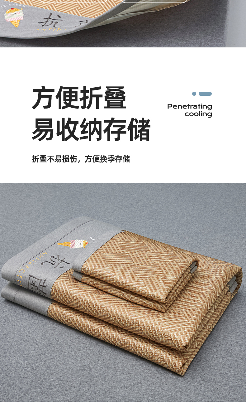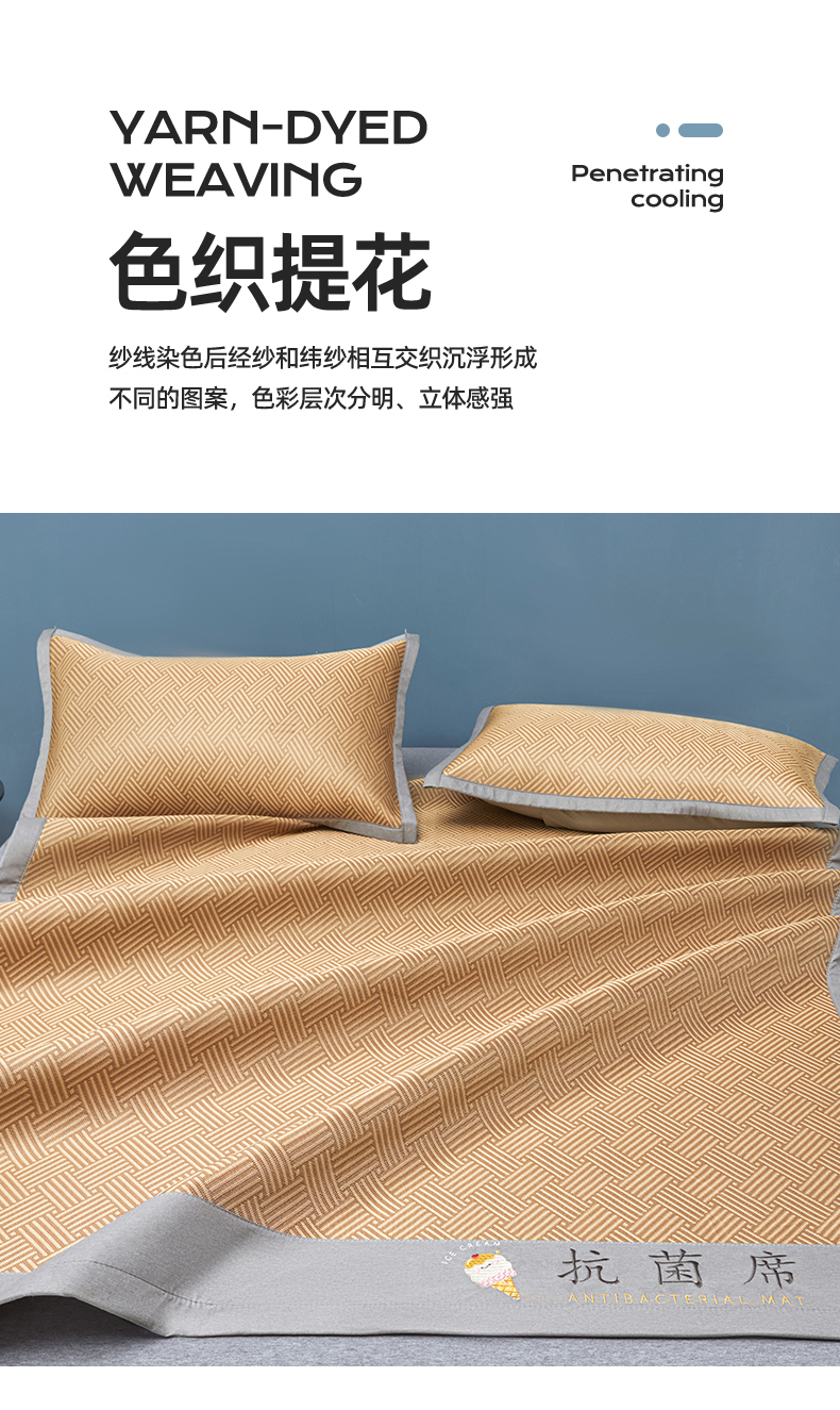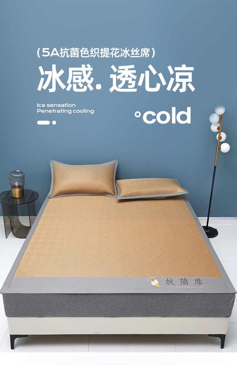 商品名称:鑫姿席业 2025新款抗菌冰激凌凉感丝冰丝席系列 冰激凌-咖色