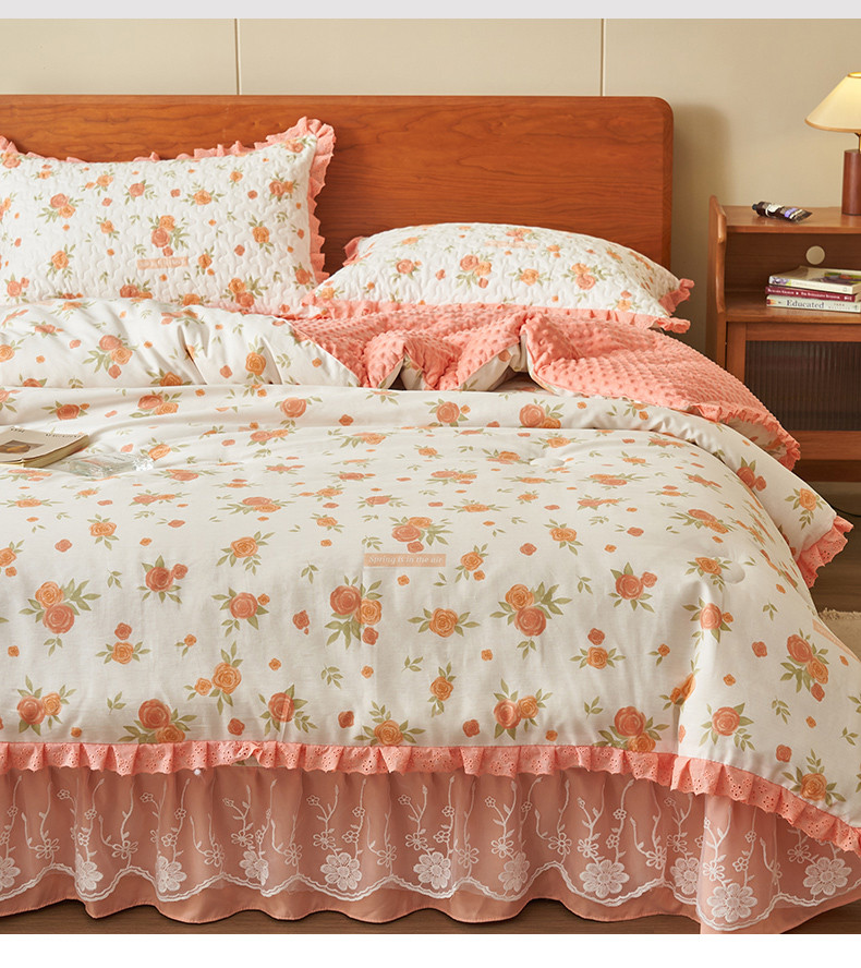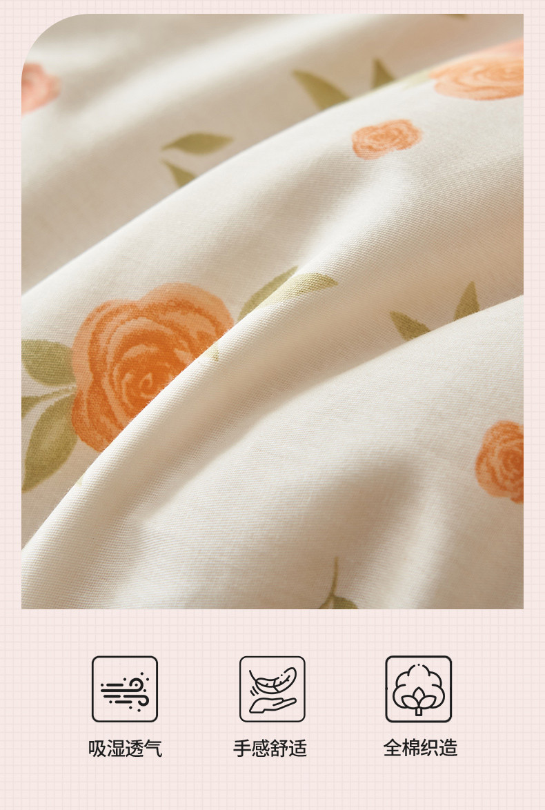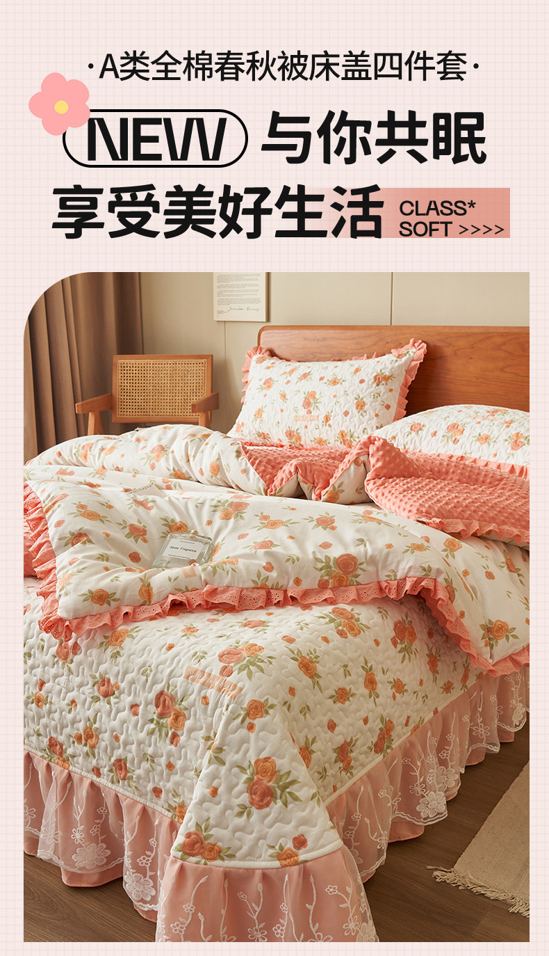 商品名称:恒爱 2023新款全棉春秋被床盖四件套 桔色花语