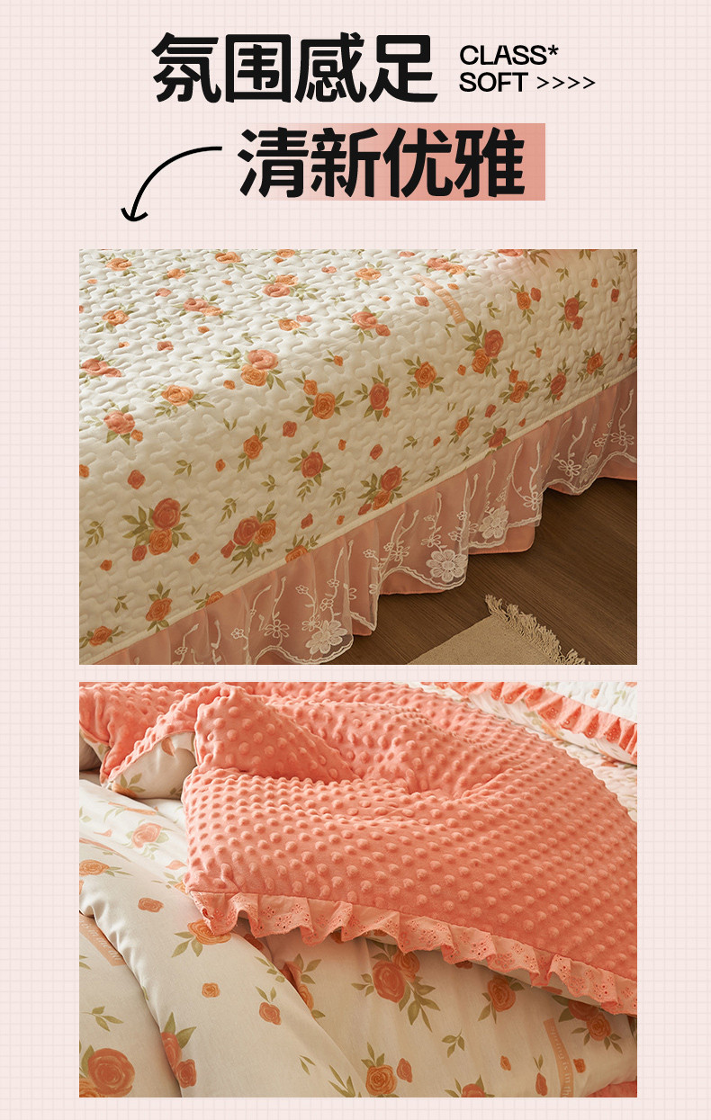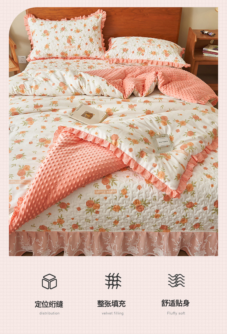(总)恒爱 2022秋冬水晶绒翩翩花舞夹棉床裙四件套,大红色,豆沙红,橄榄绿,公主粉,桔色,咖啡色,孔雀绿,拉菲红,罗兰紫,玫红色,美人玉,米白色,米驼色,抹茶绿,浅灰色,紫色