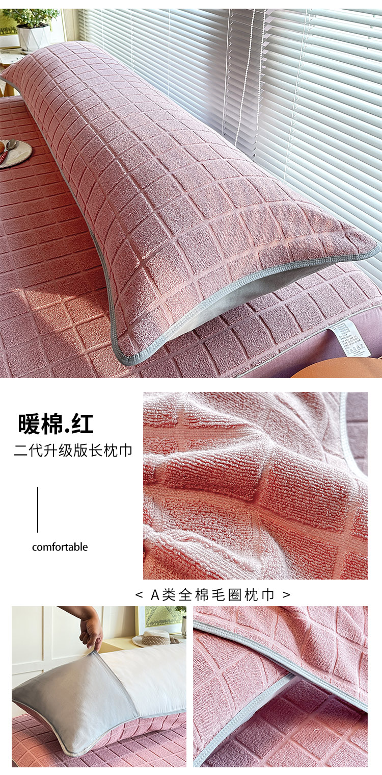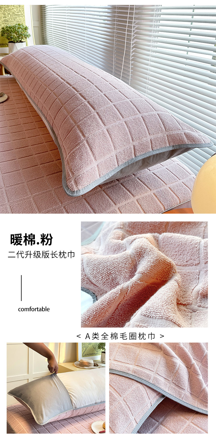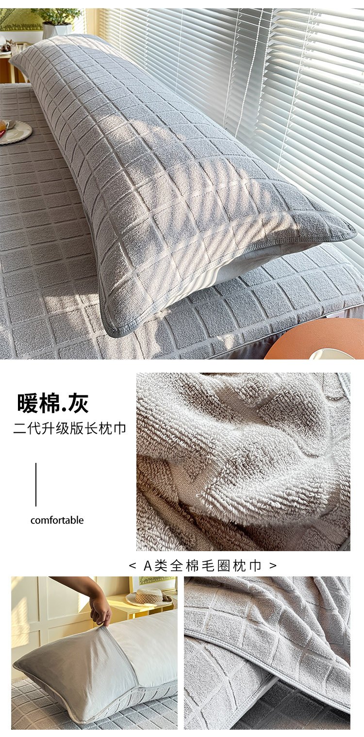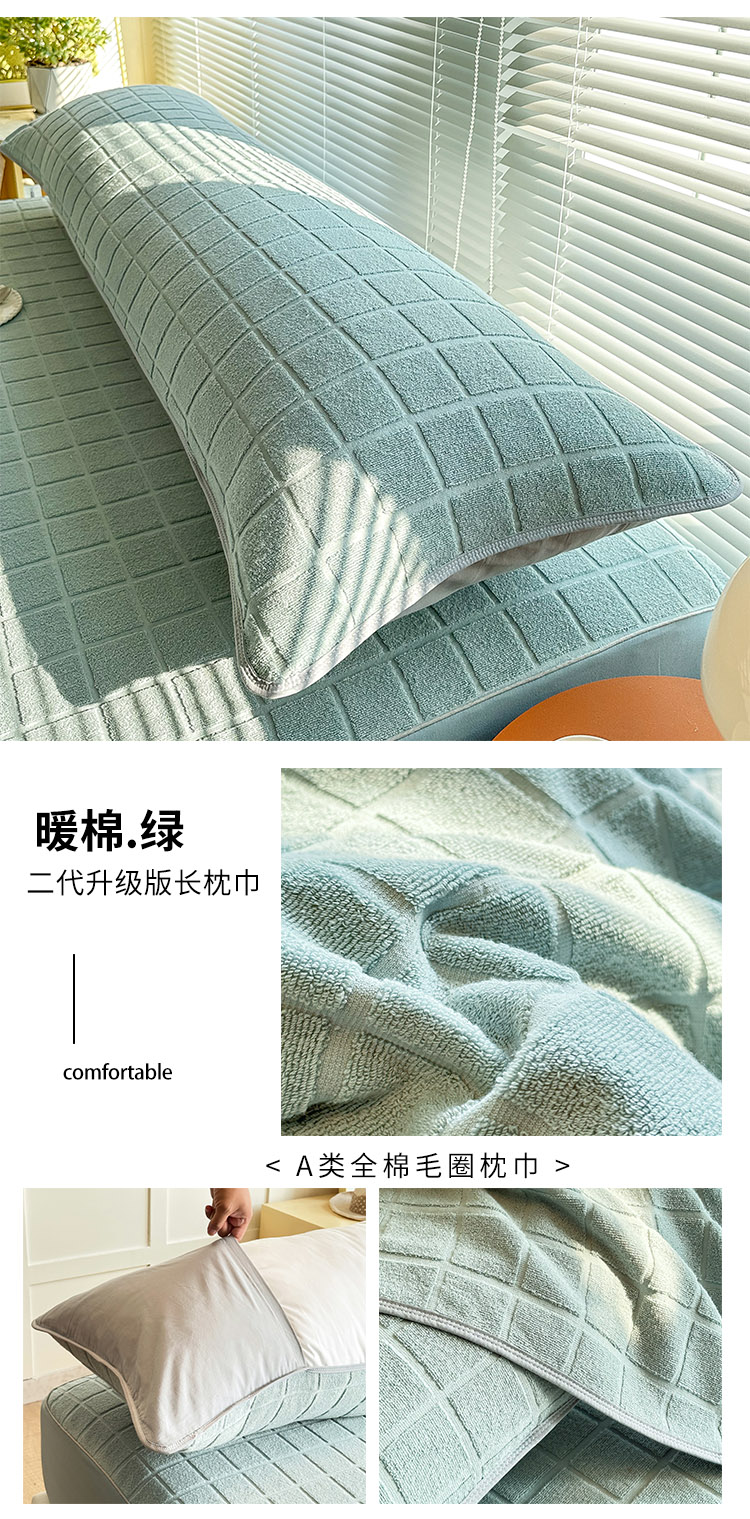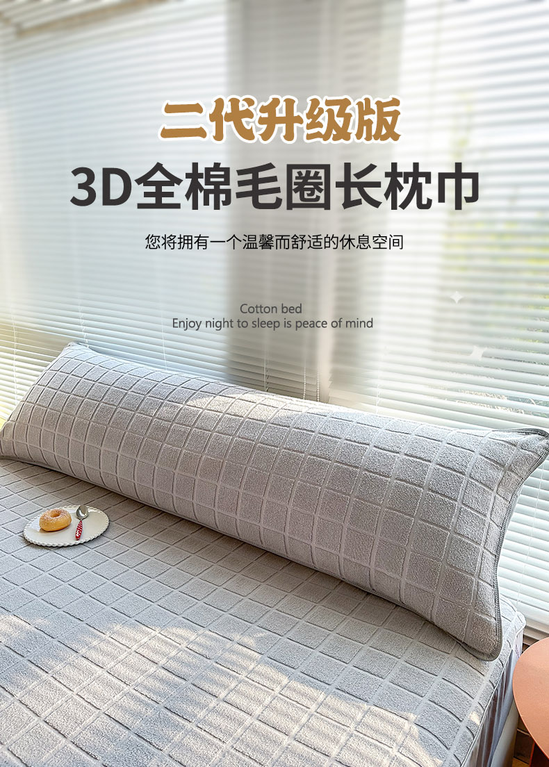 (总)爱港家纺 2023新款全棉A类毛巾布升级款长枕巾枕芯保护套