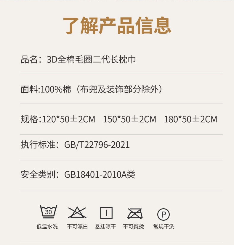 商品名称:(总)爱港家纺 2023新款全棉A类毛巾布升级款长枕巾枕芯保护套