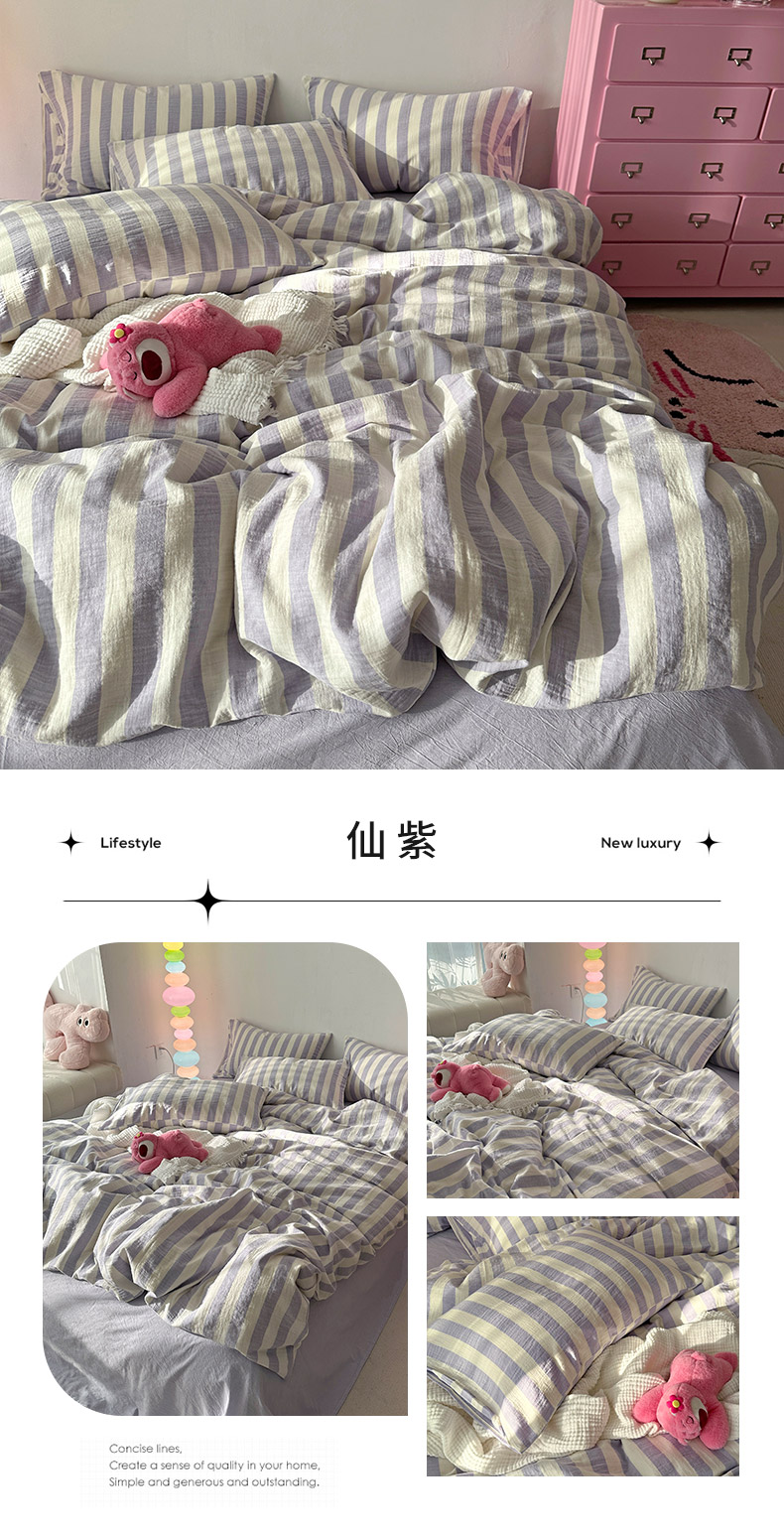 千朵 2023新款色织双层皱皱纱全棉四件套 仙紫