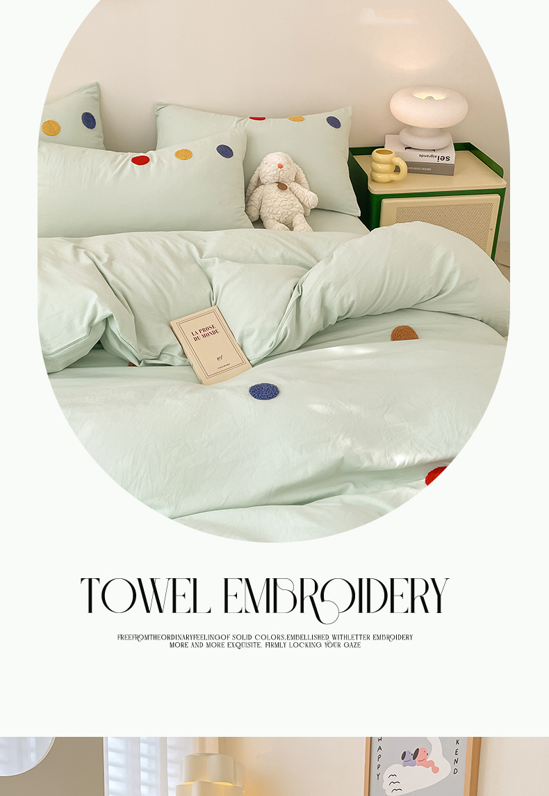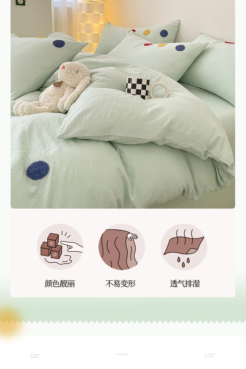 当前位置: 91家纺网 > 商品网购 > 床品套件 > 四件套 > 水洗棉四件套 > 凯洛奇 2024新款1超柔水洗棉毛巾绣波球系列四件套 波球-松石绿