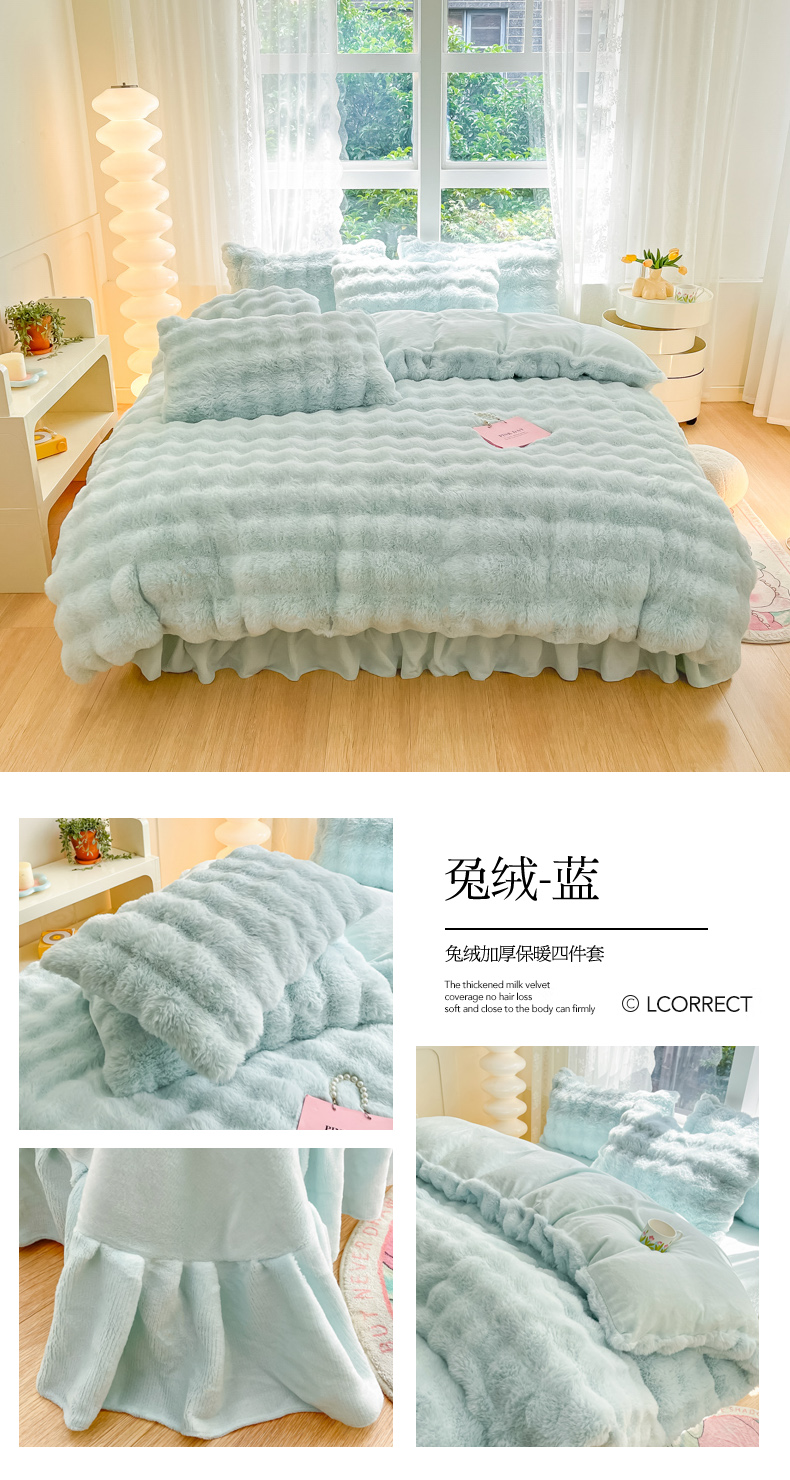 商品名称:慕澄家纺 2024新款大泡泡兔毛绒加厚保暖四件套 兔绒-蓝