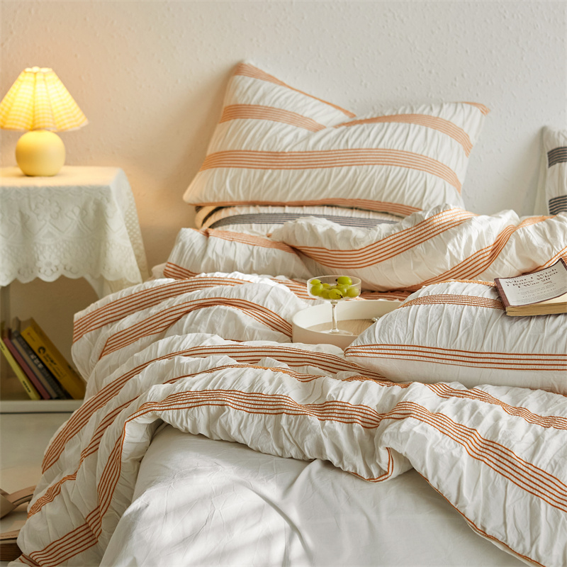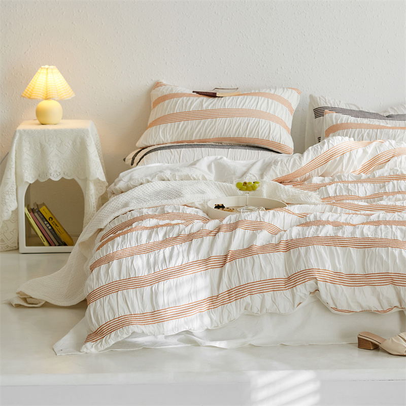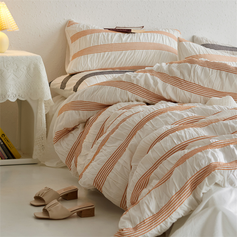 简家居 2024新款泡泡纱四件套-泡芙系列 橙色
