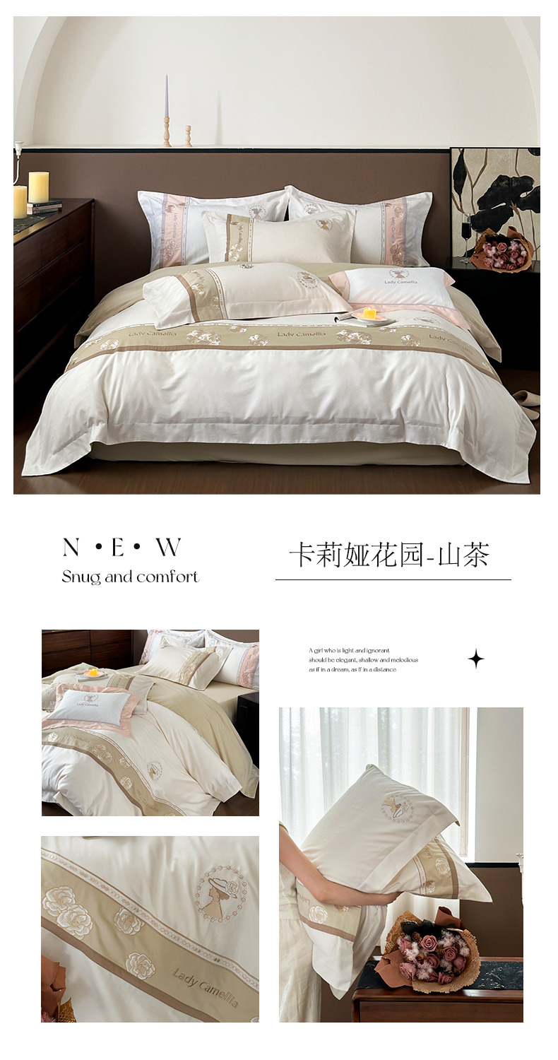 商品名称:宜代光年 2024新款全棉刺绣磨毛四件套 卡莉娅花园-山茶